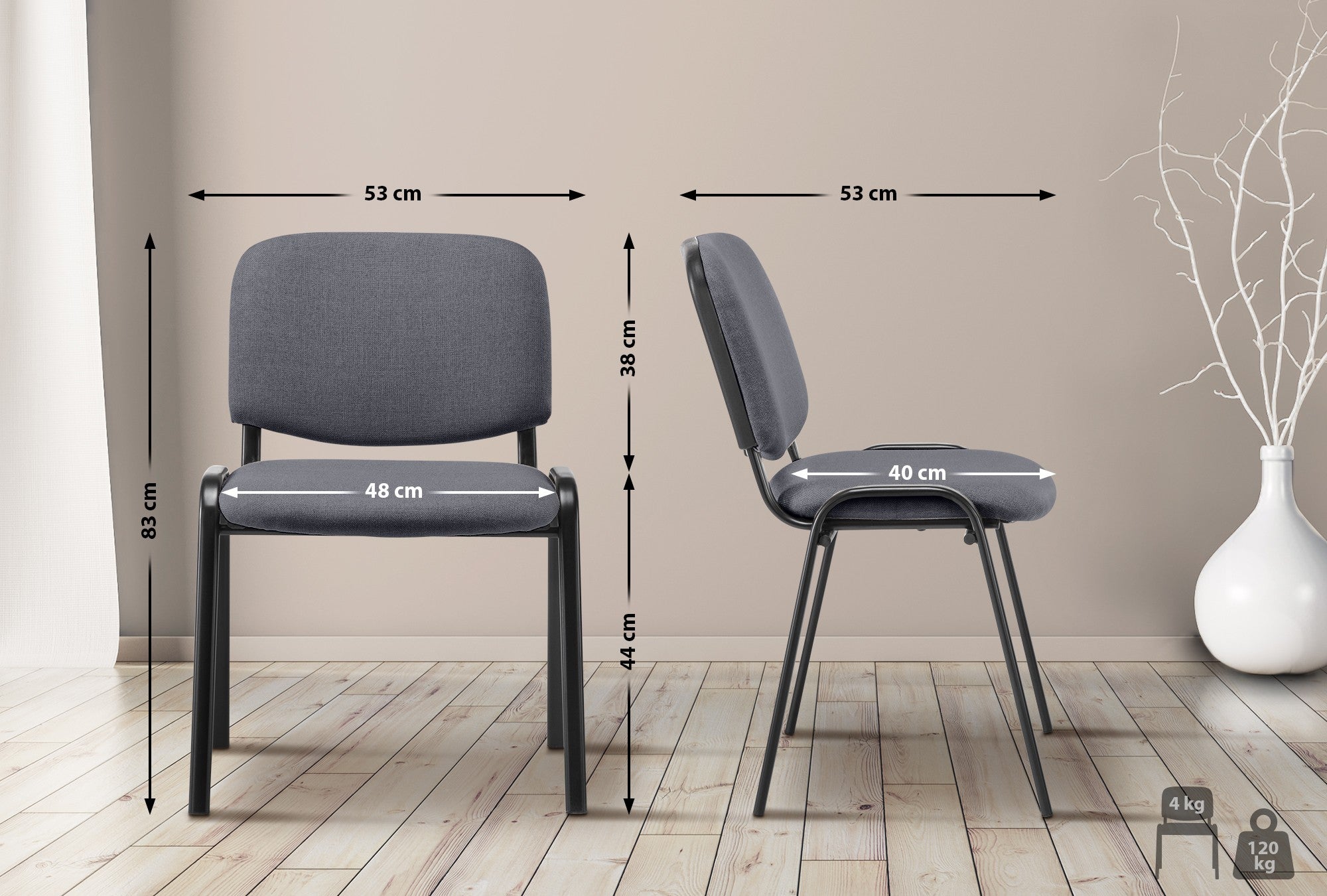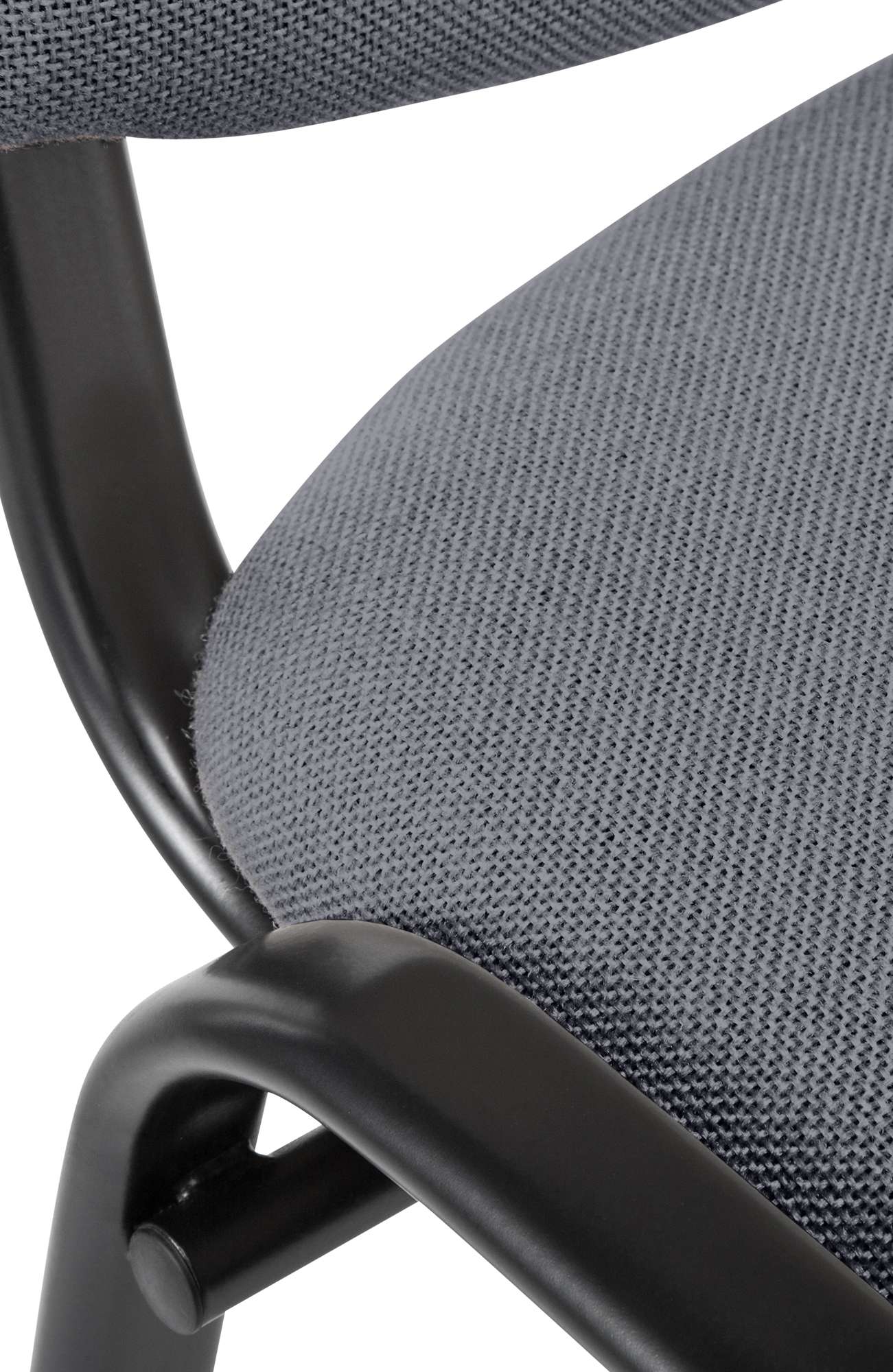 L'assise et le dossier rembourrés, recouverts d'un tissu résistant, offrent un confort longue durée. Grâce à son piètement en métal noir à quatre pieds, la chaise est stable et robuste, avec une capacité de charge maximale de 120 kg. Empilable jusqu'à quatre chaises, elle permet un rangement et une utilisation peu encombrants et flexibles. Les protections de sol en plastique empêchent les sols sensibles d'être endommagés.