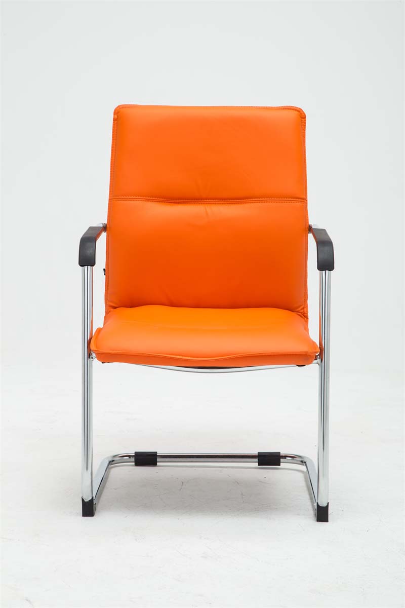 Lot de 2 chaises de bureau fauteuil visiteur avec accoudoirs en PVC orange et métal aspect chromé 10_0007869