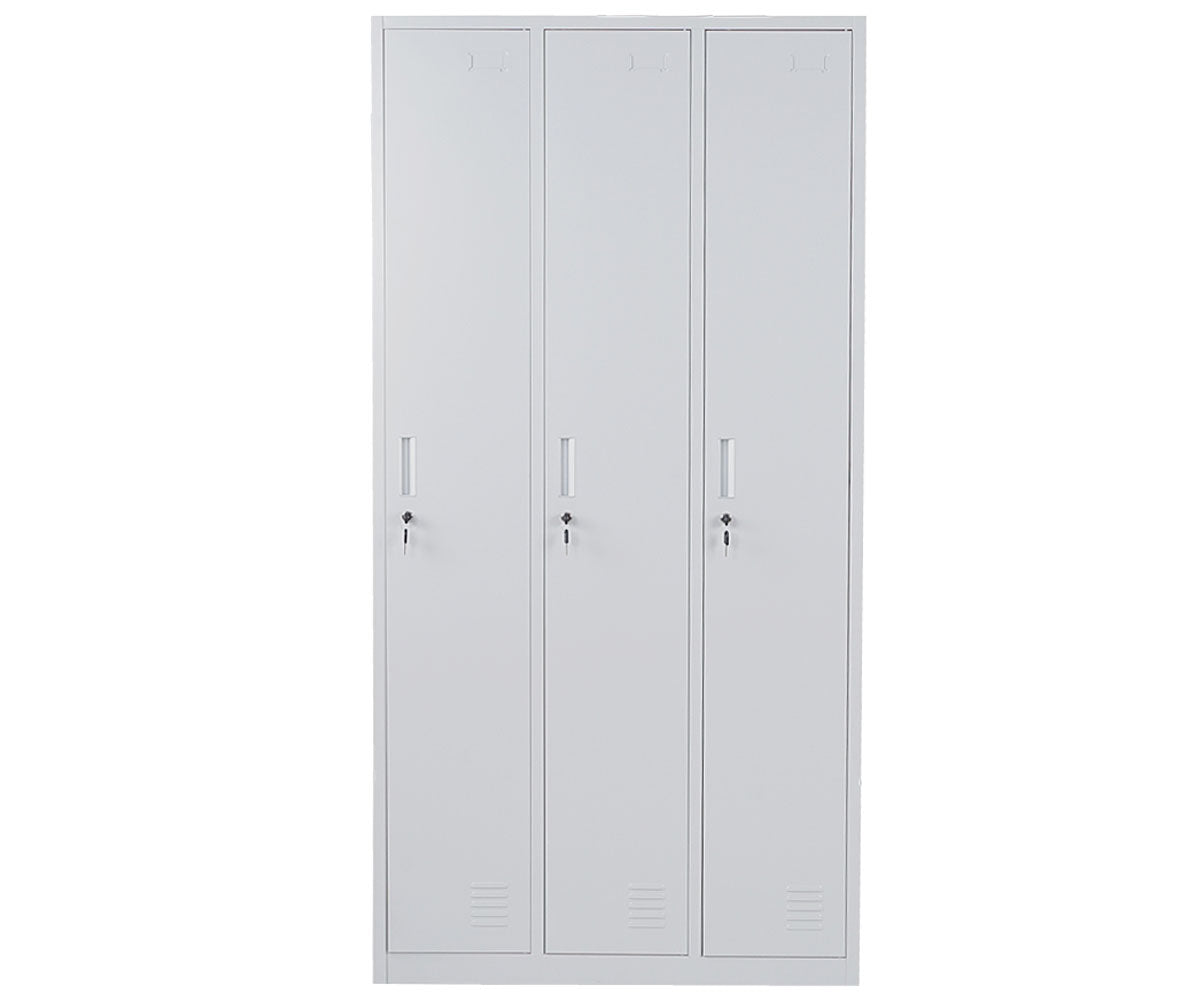 Casier avec 3 compartiments avec serrure tôle d'acier laminé gris 180x90x50 cm 04_0007273