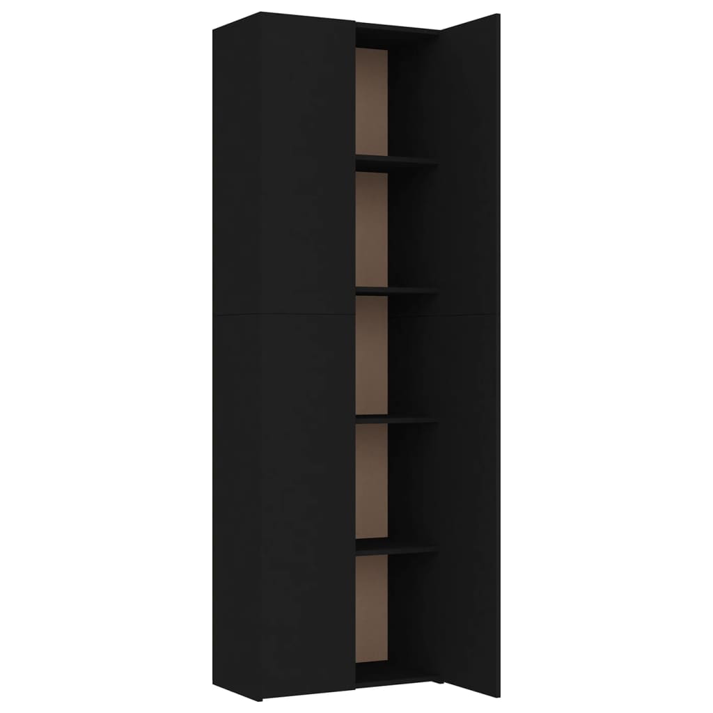 Meuble de bureau armoire de rangement 5 étagères avec deux portes 60 x 32 x 190 cm bois d'ingénierie noir DEC024467