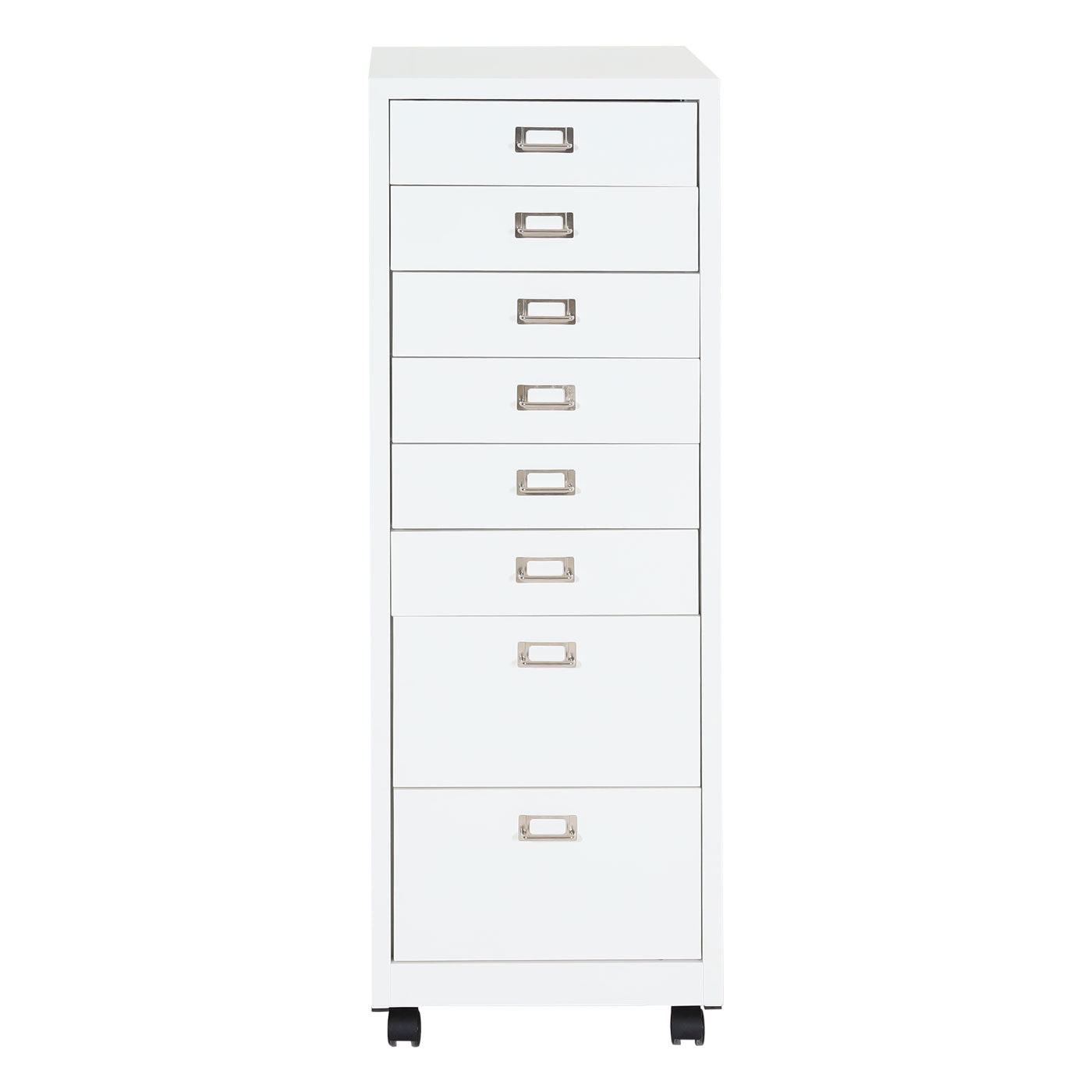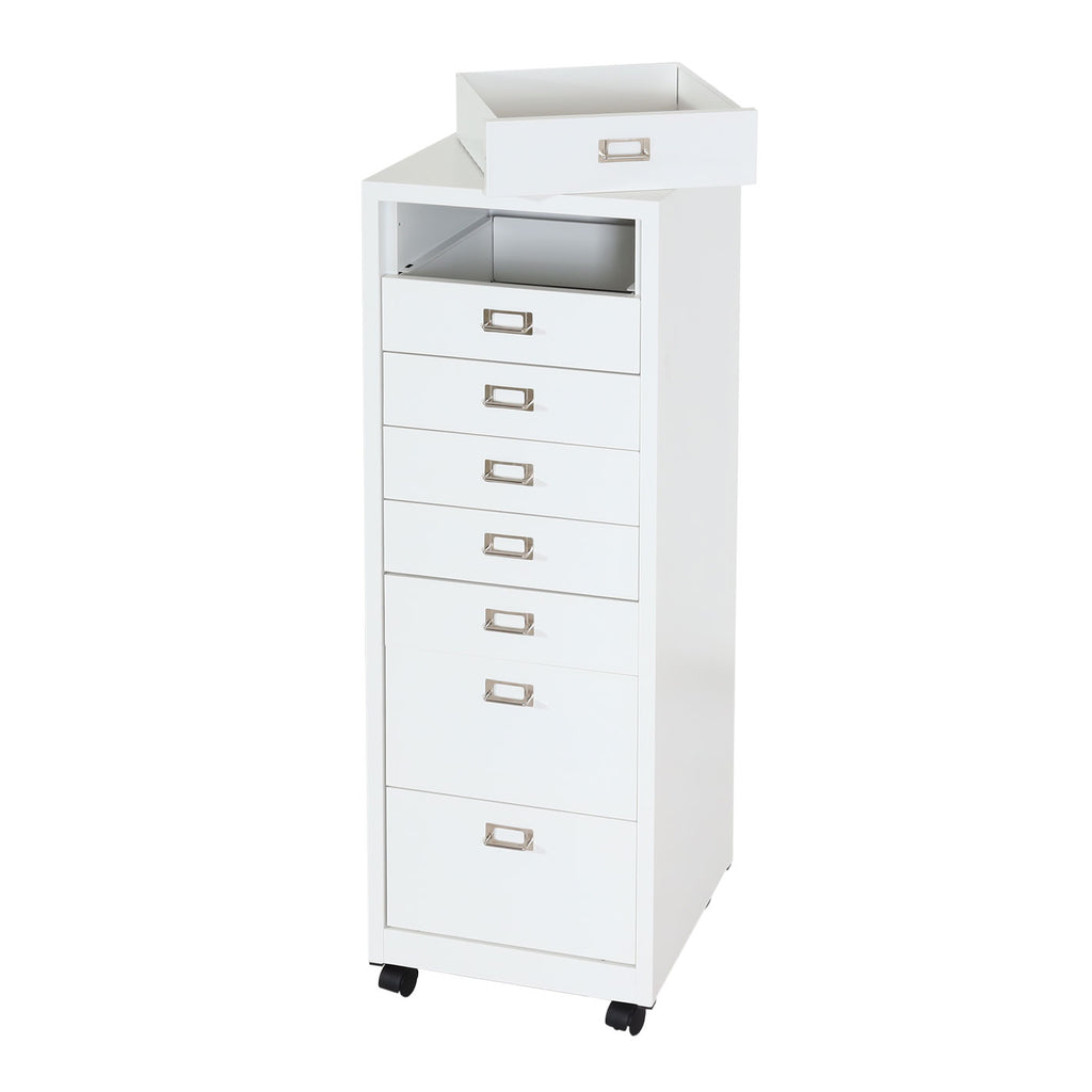 Les huit tiroirs en acier offrent suffisamment d'espace pour les ustensiles de bureau, les accessoires informatiques et les documents qui n'ont pas leur place sur votre bureau.
