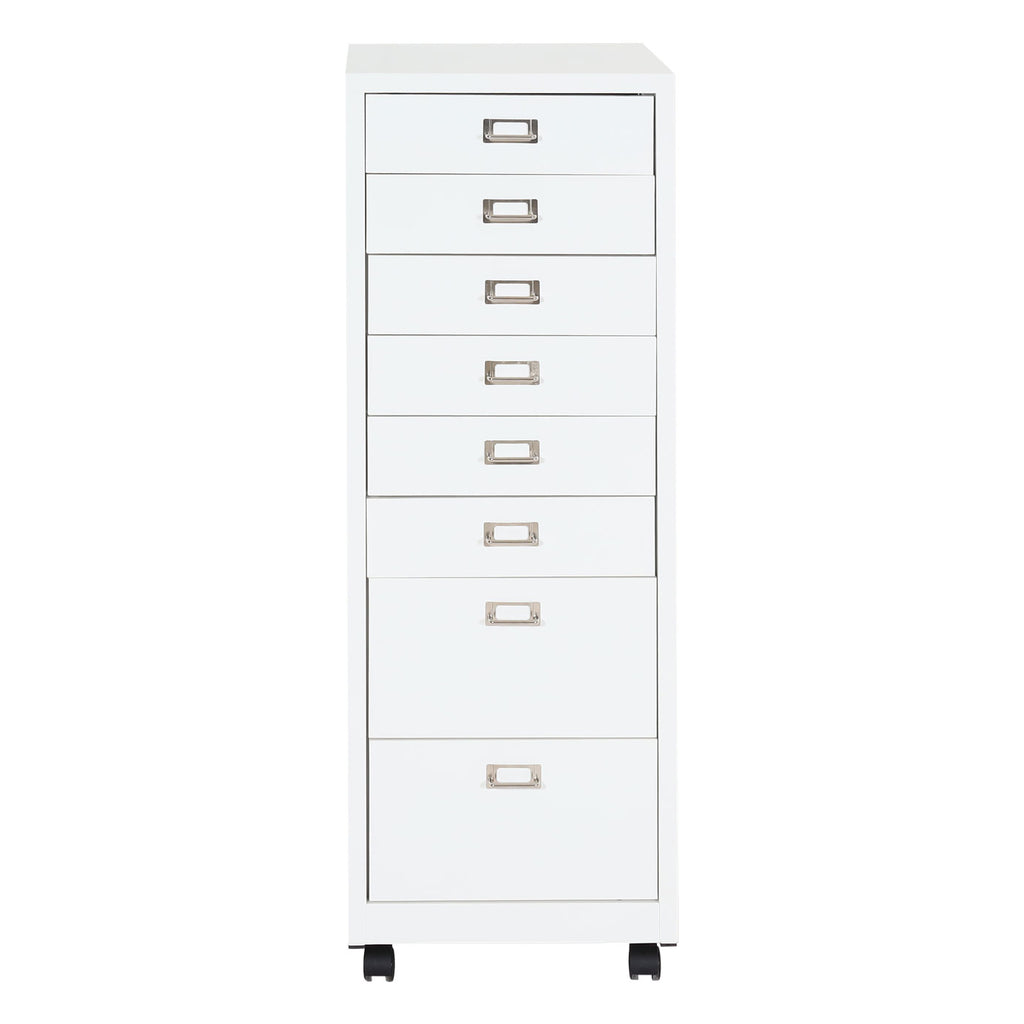 Caisson à tiroirs meuble de bureau 115 x 40 x 41 cm 8 tiroirs en acier blanc 04_0008263