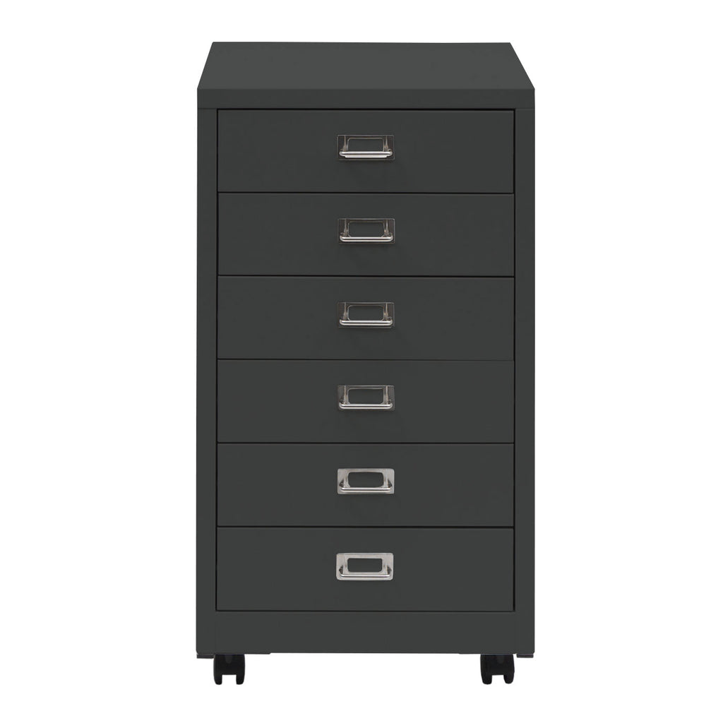 Caisson à tiroirs meuble de bureau 75 x 40 x 41 cm 6 tiroirs en acier gris foncé 04_0008273