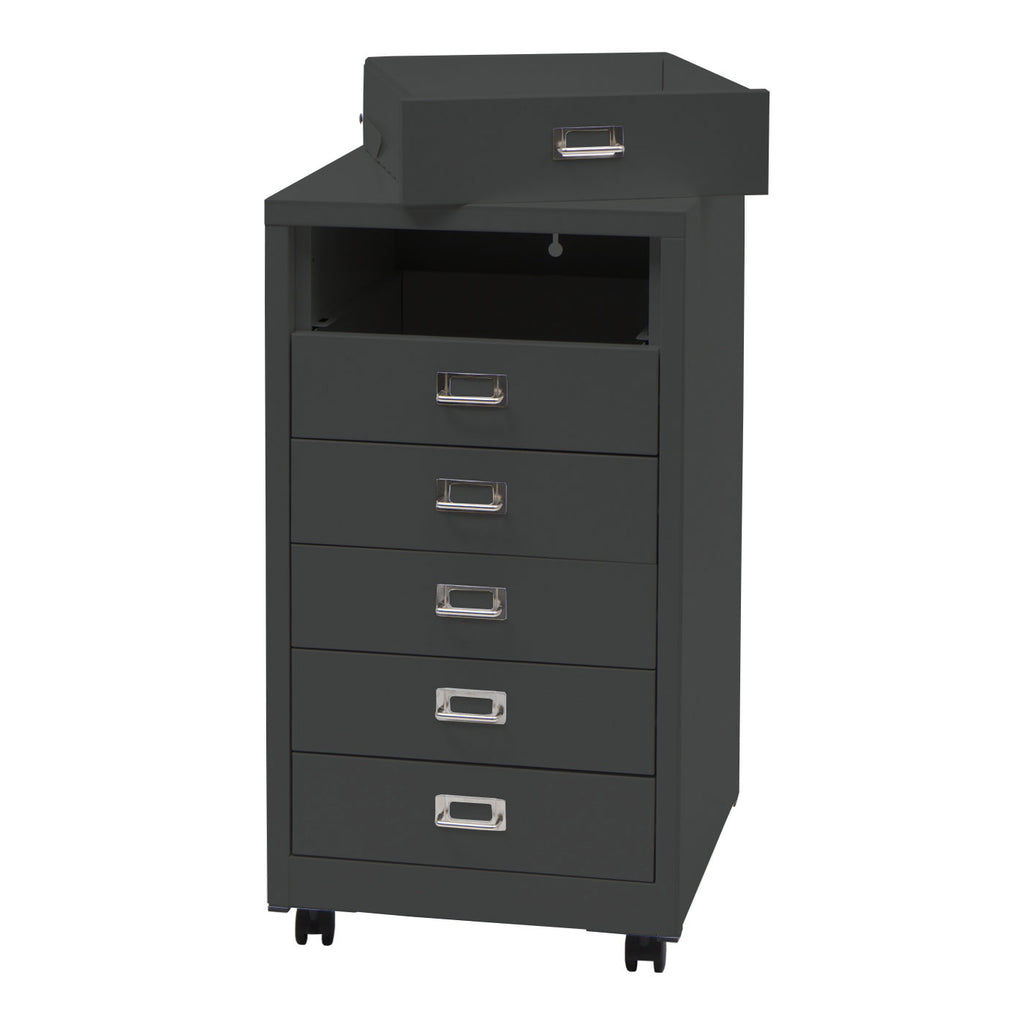 Les six tiroirs en acier offrent suffisamment d'espace pour les ustensiles de bureau, les accessoires informatiques et les documents qui n'ont pas leur place sur votre bureau.