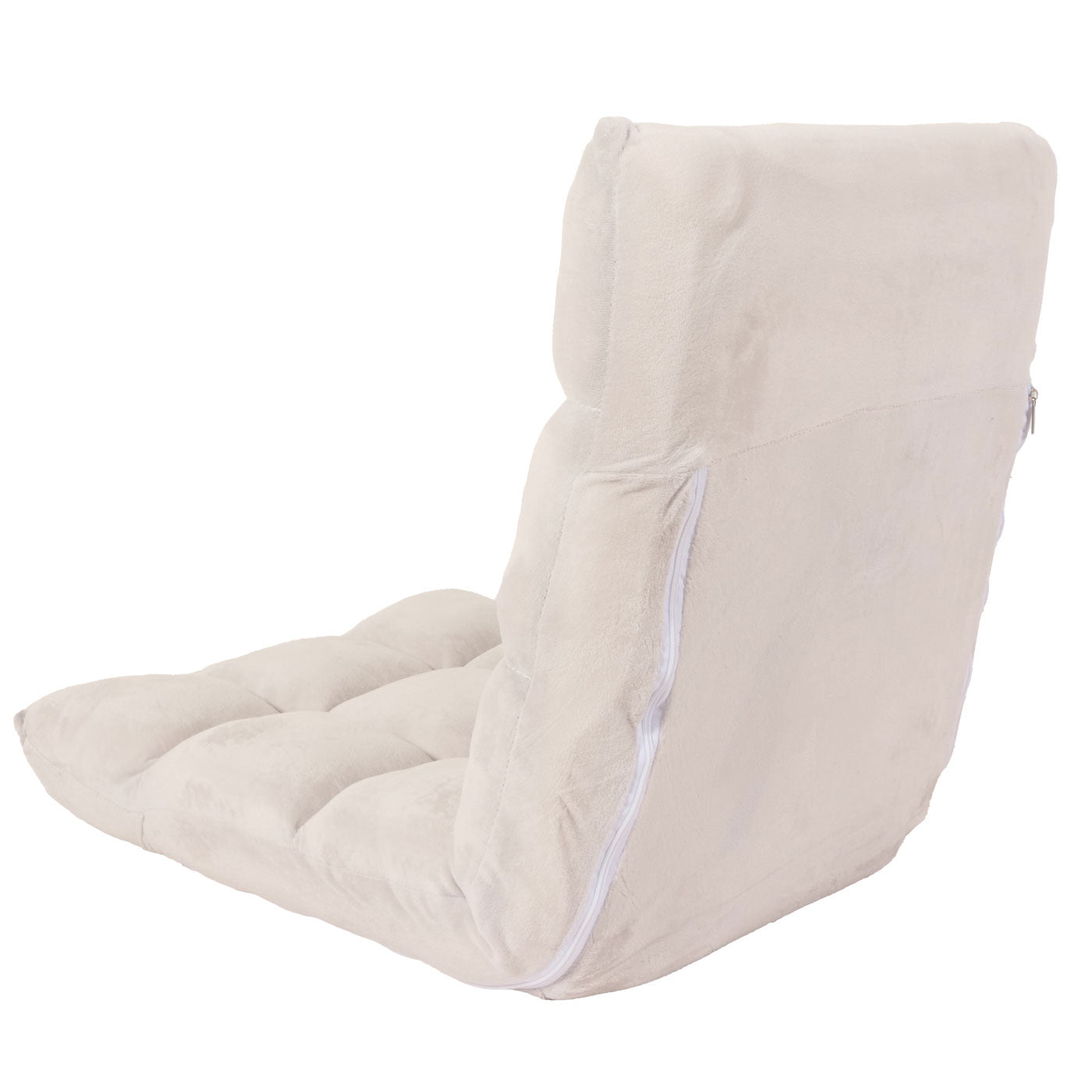 Fauteuil au sol repose-tête réglable 6 positions – Structure en métal – Tissu velours crème-gris 04_0006362