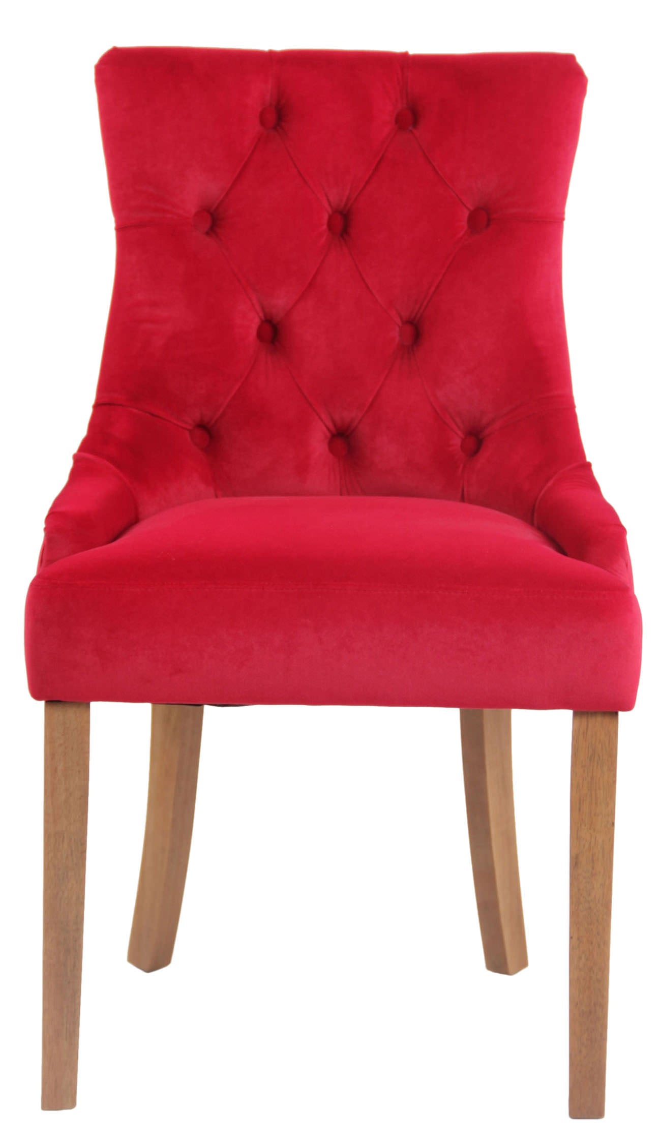 Chaise de salle à manger x1 design antique capitonné en velours rouge avec 4 pieds en bois clair 10_0001939
