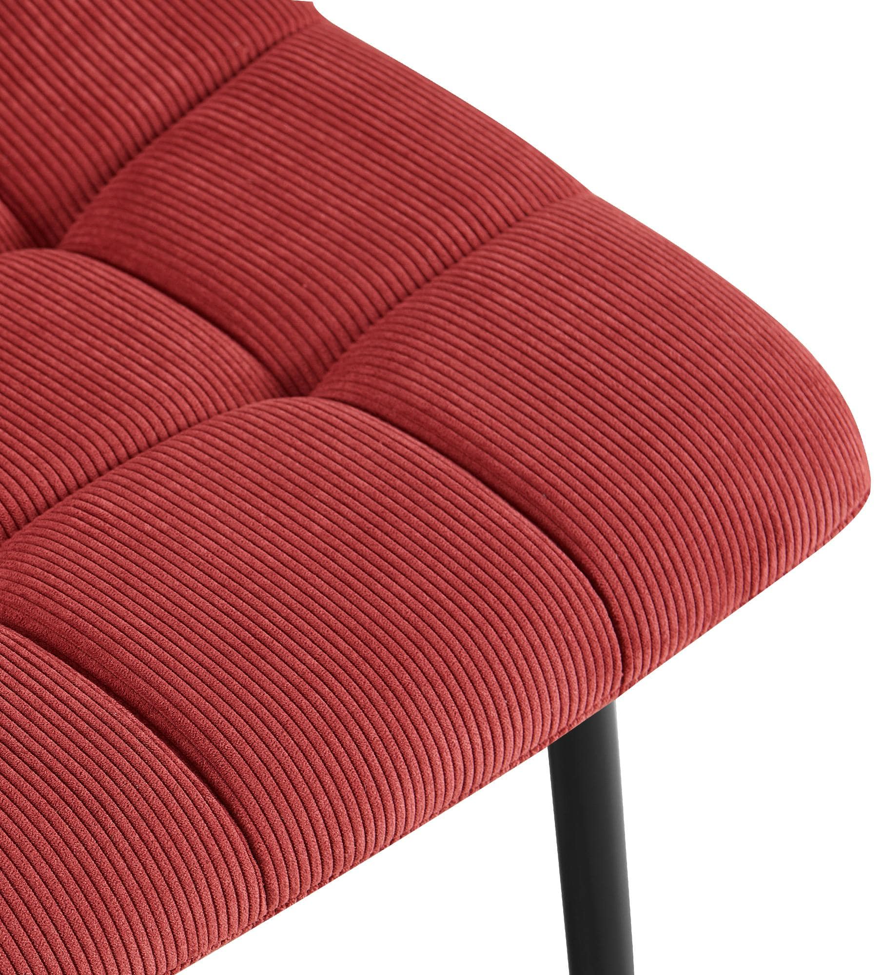 Le rembourrage confortable de l'assise et du dossier est essentiel pour une assise confortable. La coque et le dossier sont tous deux recouverts d'un élégant revêtement en velours côtelé. Le motif matelassé élégant crée un effet accrocheur.