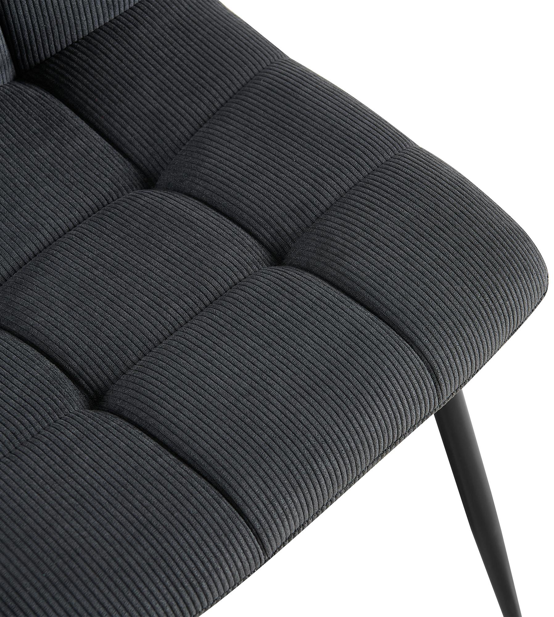 Le rembourrage confortable de l'assise et du dossier est essentiel pour une assise confortable. La coque et le dossier sont tous deux recouverts d'un élégant revêtement en velours côtelé. Le motif matelassé élégant crée un effet accrocheur.