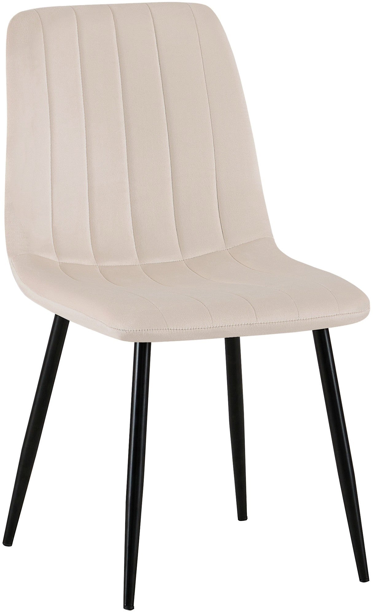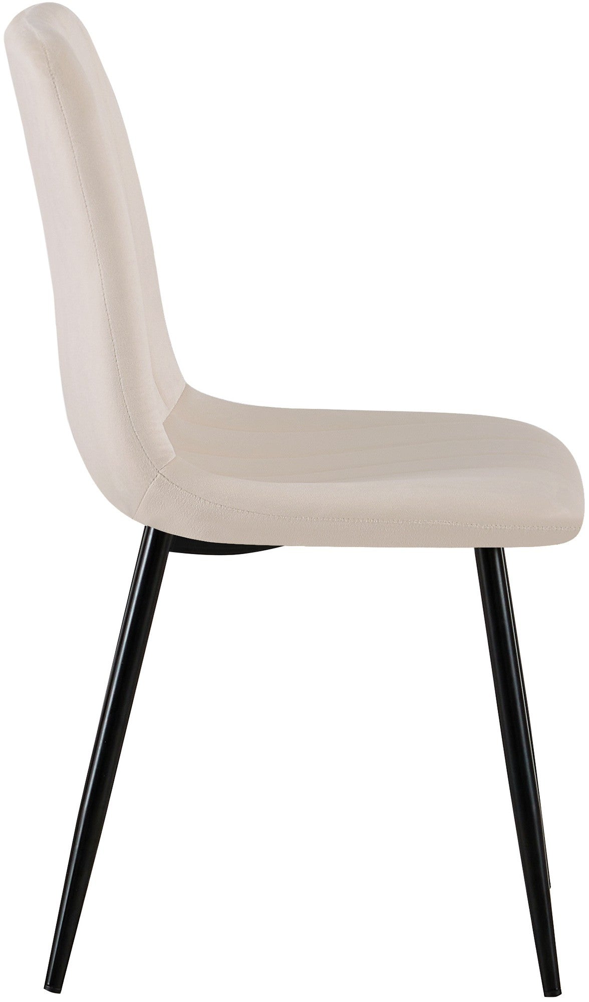 Chaise de salle à manger x1 coutures décoratives verticales assise en tissu velours crème pieds en métal noir 10_0002204