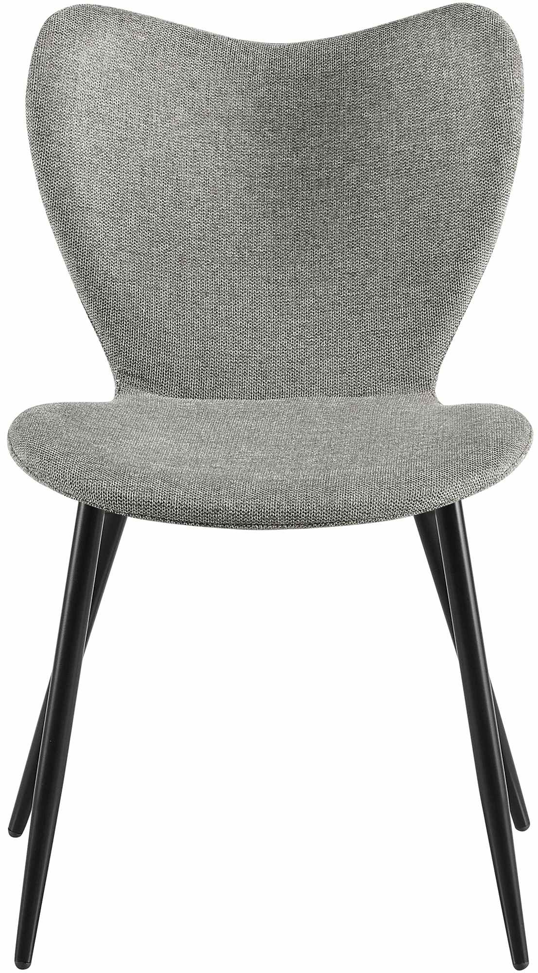 Chaise de salle à manger x1 dossier forme arrondie en papillon en tissu gris cadre à quatre pieds en métal noir 10_0007578