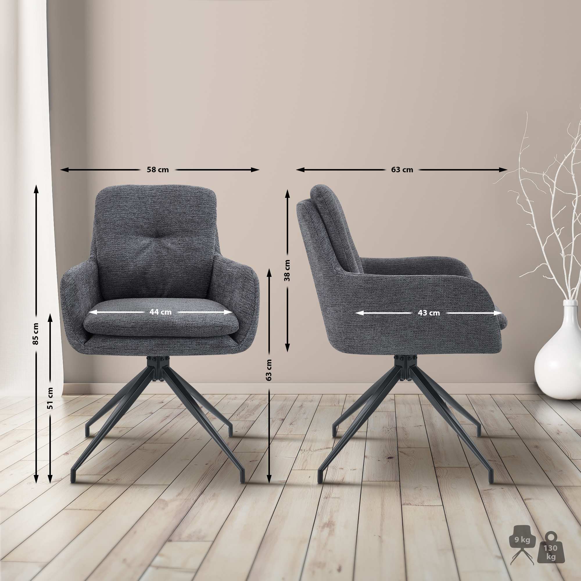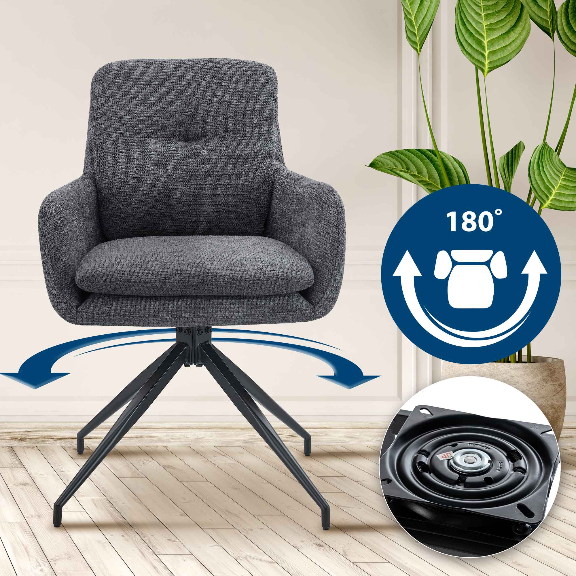 Chaise de salle à manger x1 fonction pivotante confortable et moderne en tissu gris foncé cadre métal 10_0007176
