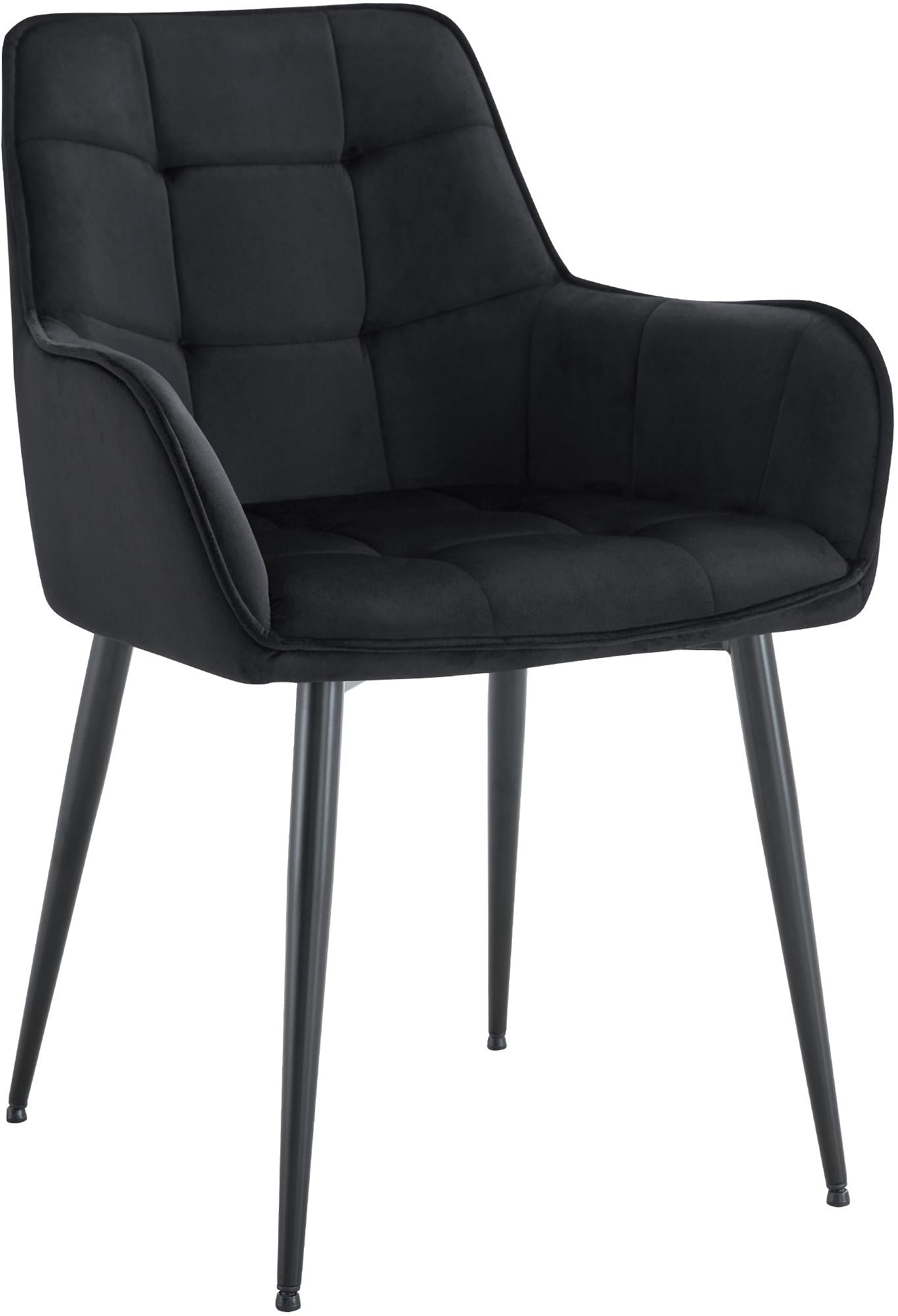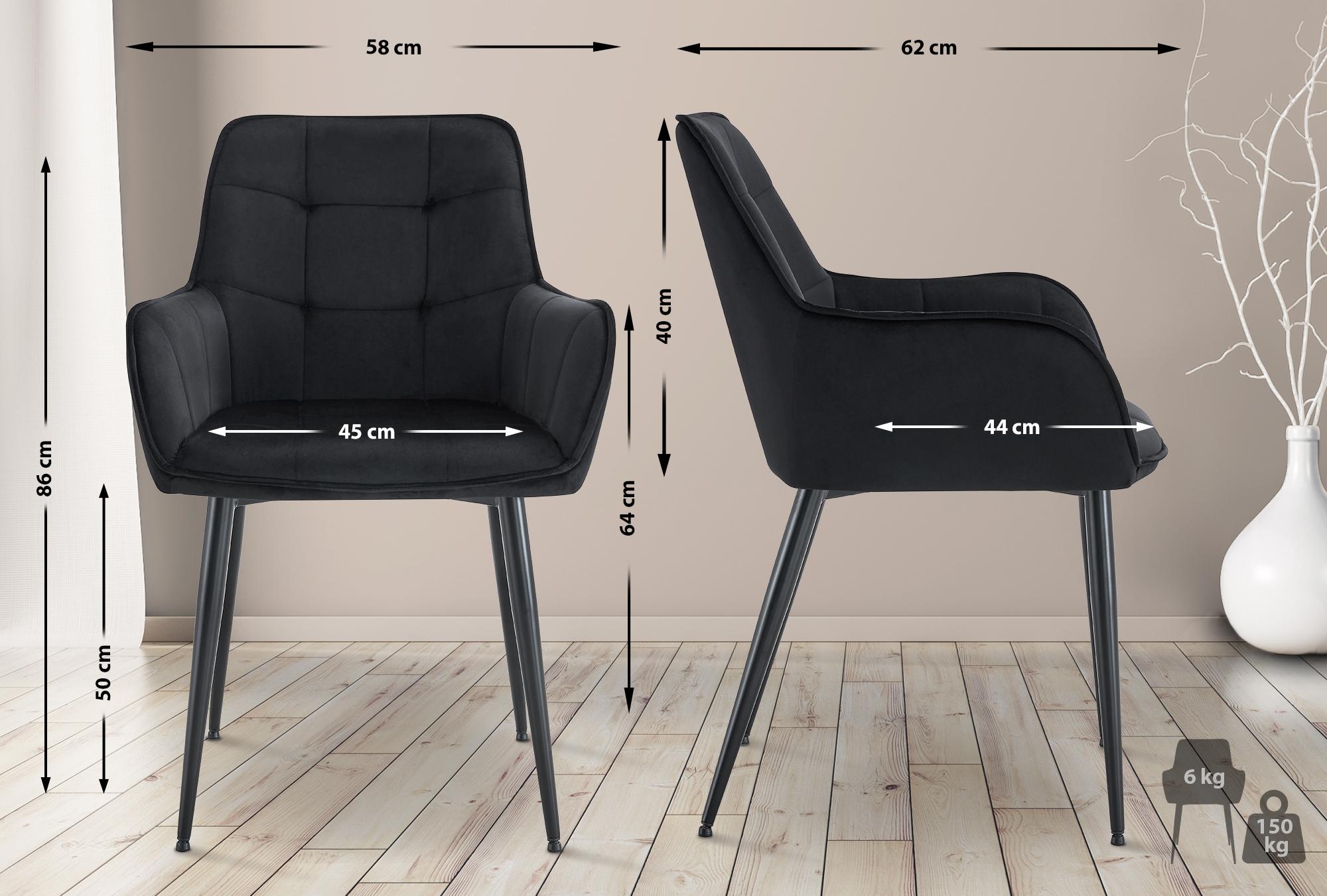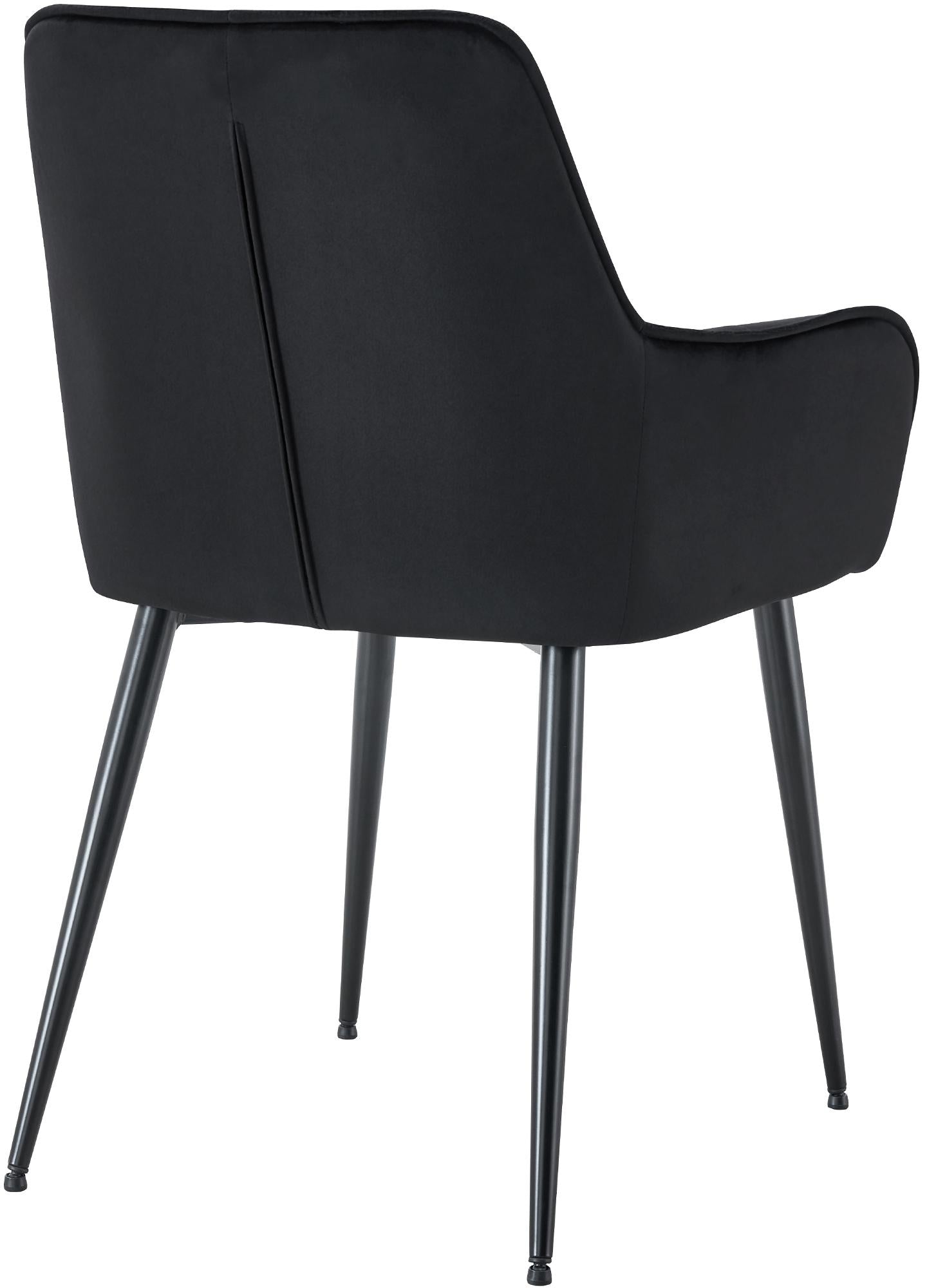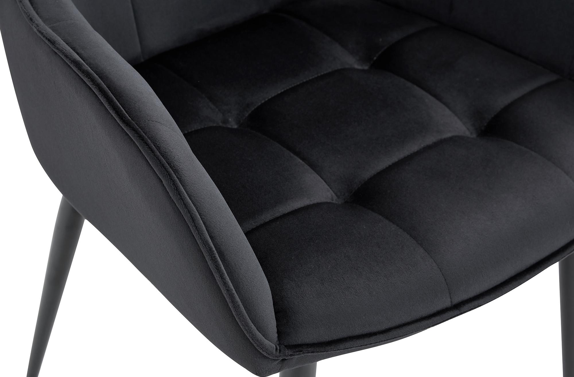 Chaise de salle à manger x1 avec accoudoirs en velours noir capitonné cadre métal noir 10_0007192