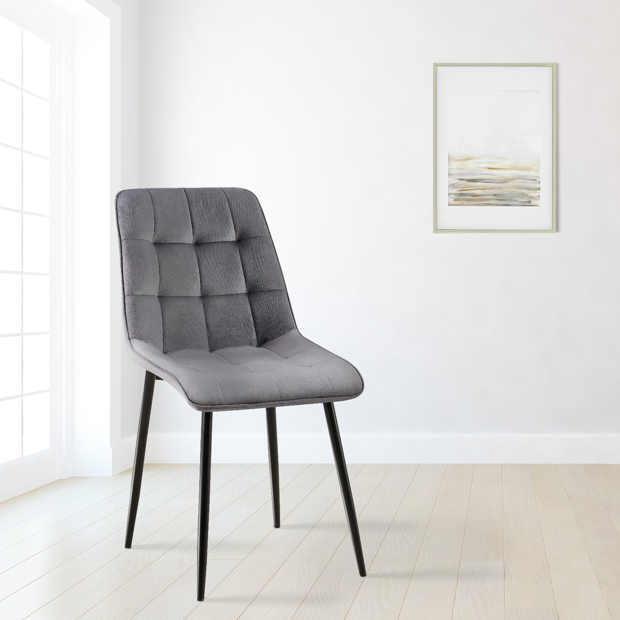 Chaise de salle à manger x1 coutures décoratives carrées en velours gris foncé cadre métal noir 10_0007202