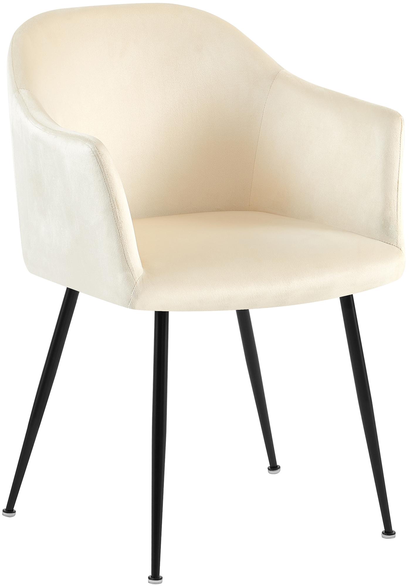 Chaise de salle à manger en velours crème avec dossier arrondi et pieds métal noir moderne et intemporel 10_0007497