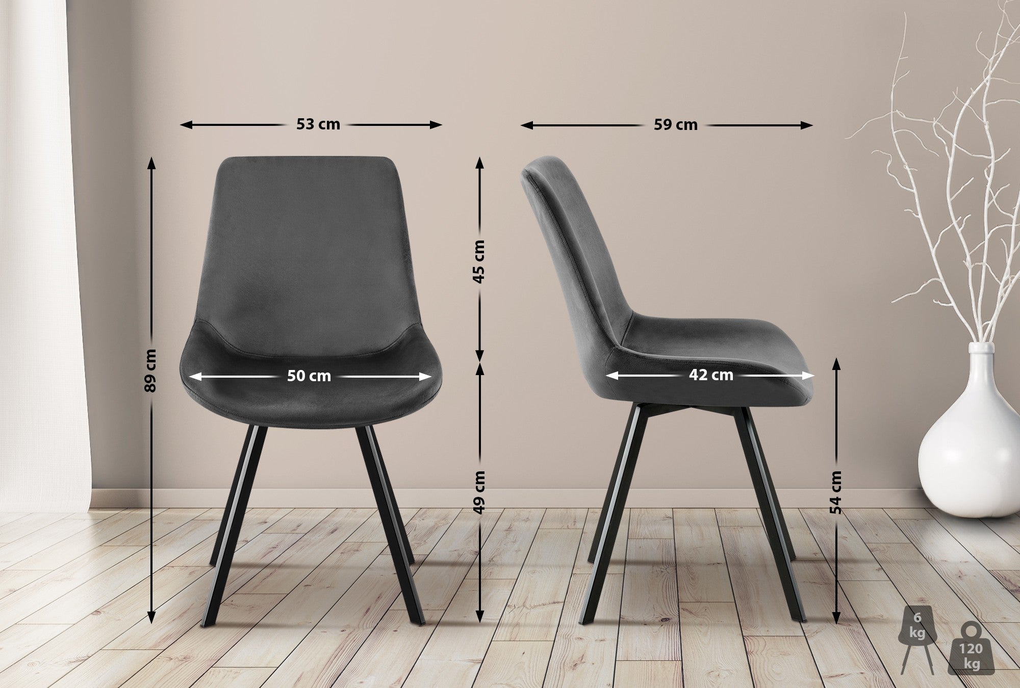 Chaise de salle à manger x1 pivotant à 360 degrés en velours gris foncé cadre en métal noir 10_0007563