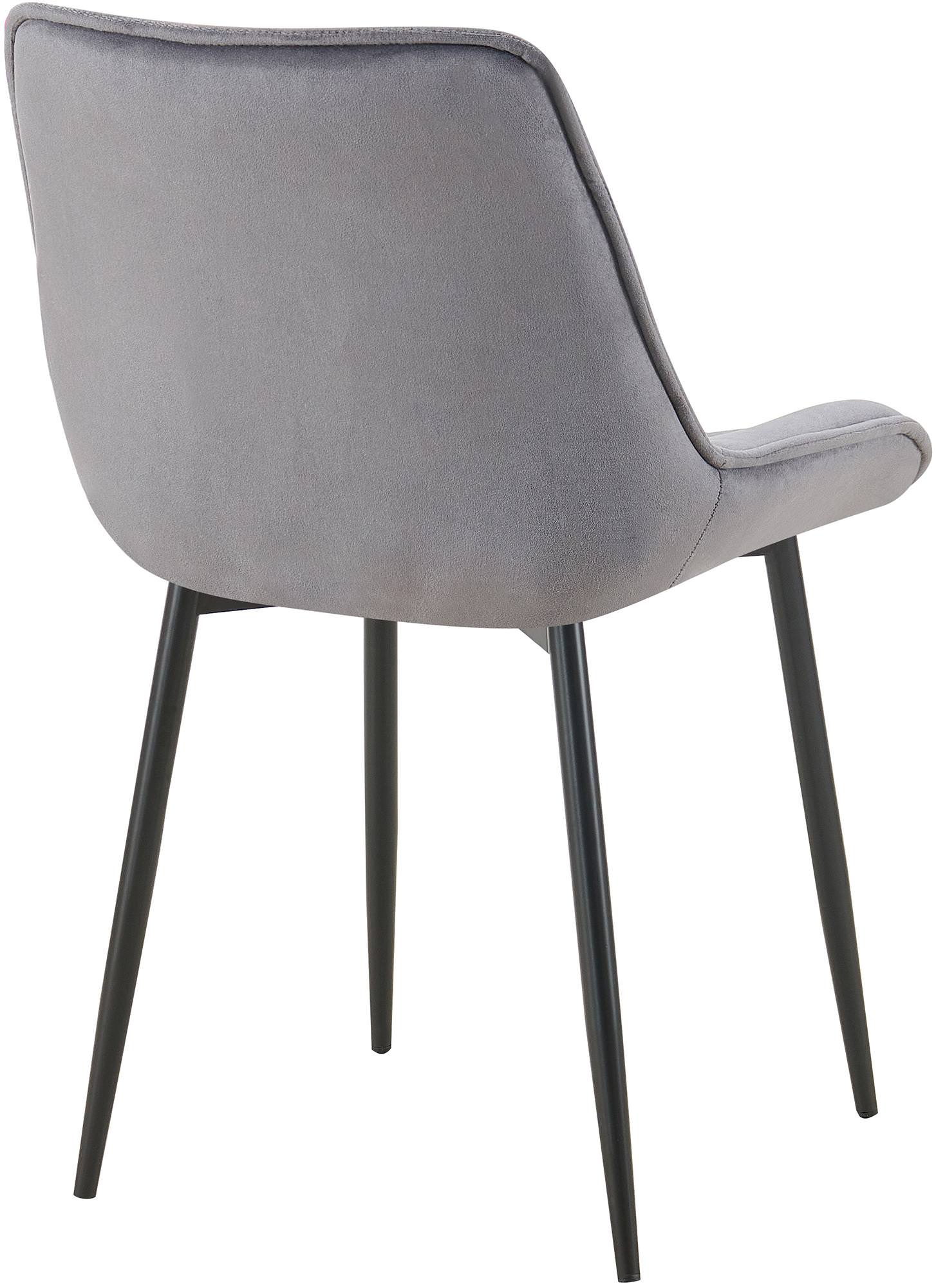 La chaise de salle à manger allie confort d'assise et style moderne. Cette chaise rembourrée est idéale pour votre table de salle à manger, votre cuisine, votre salon et bien plus encore. Le rembourrage agréable de l'assise et du dossier est essentiel pour un confort optimal. L'assise est recouverte de velours facile d'entretien avec un motif matelassé tendance. La base de cette chaise de salle à manger est un cadre stable à quatre pieds noir en métal robuste. Cela signifie que la chaise de cuisine peut supporter en toute sécurité une charge allant jusqu'à 120 kg. Les patins de protection protègent les sols fragiles.