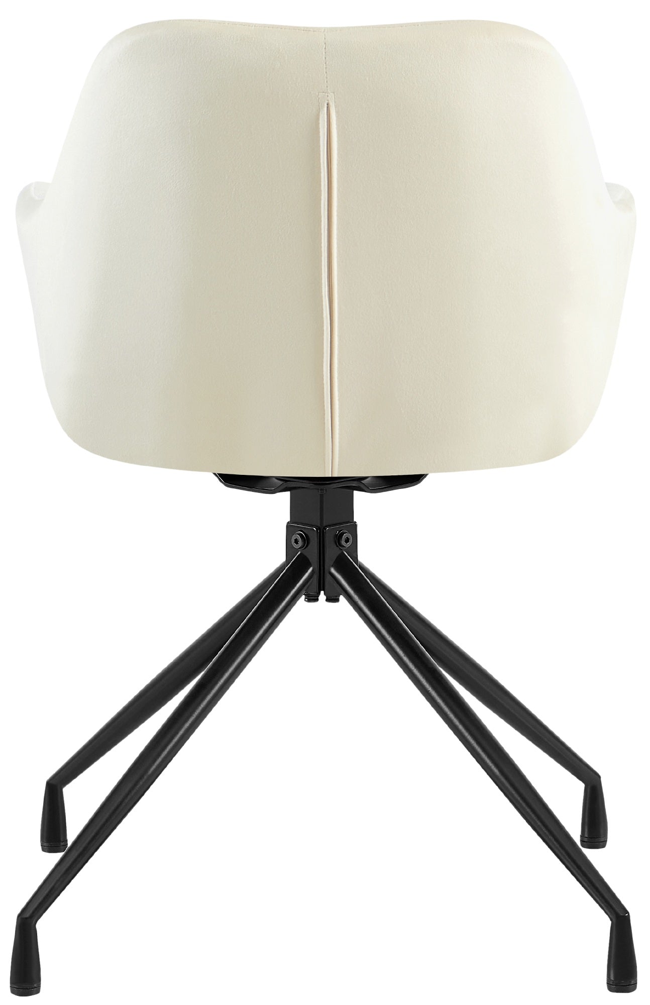 Fauteuil en velours crème à piétement étoile en métal noir – Chaise confortable style contemporain 10_0007239