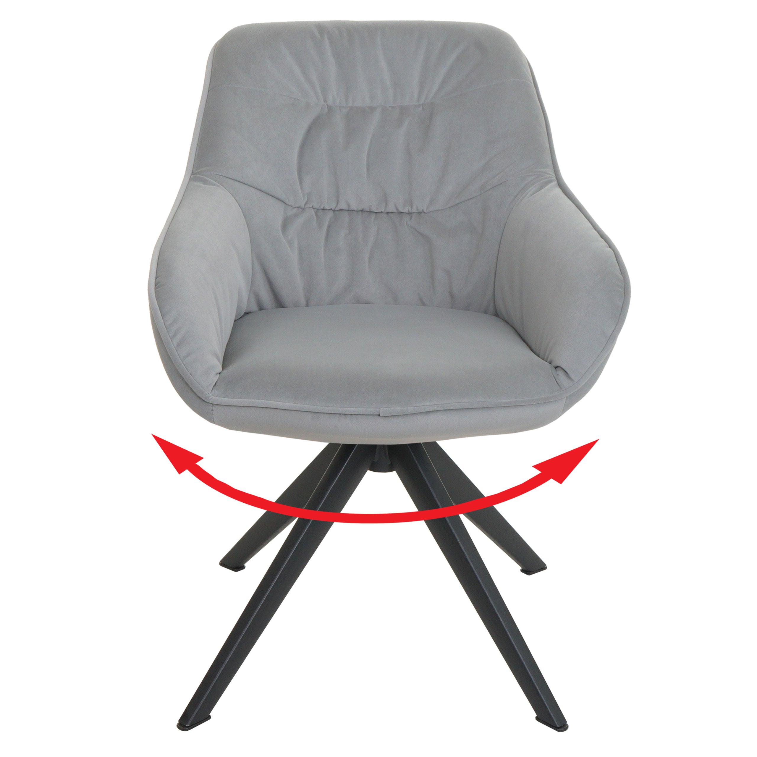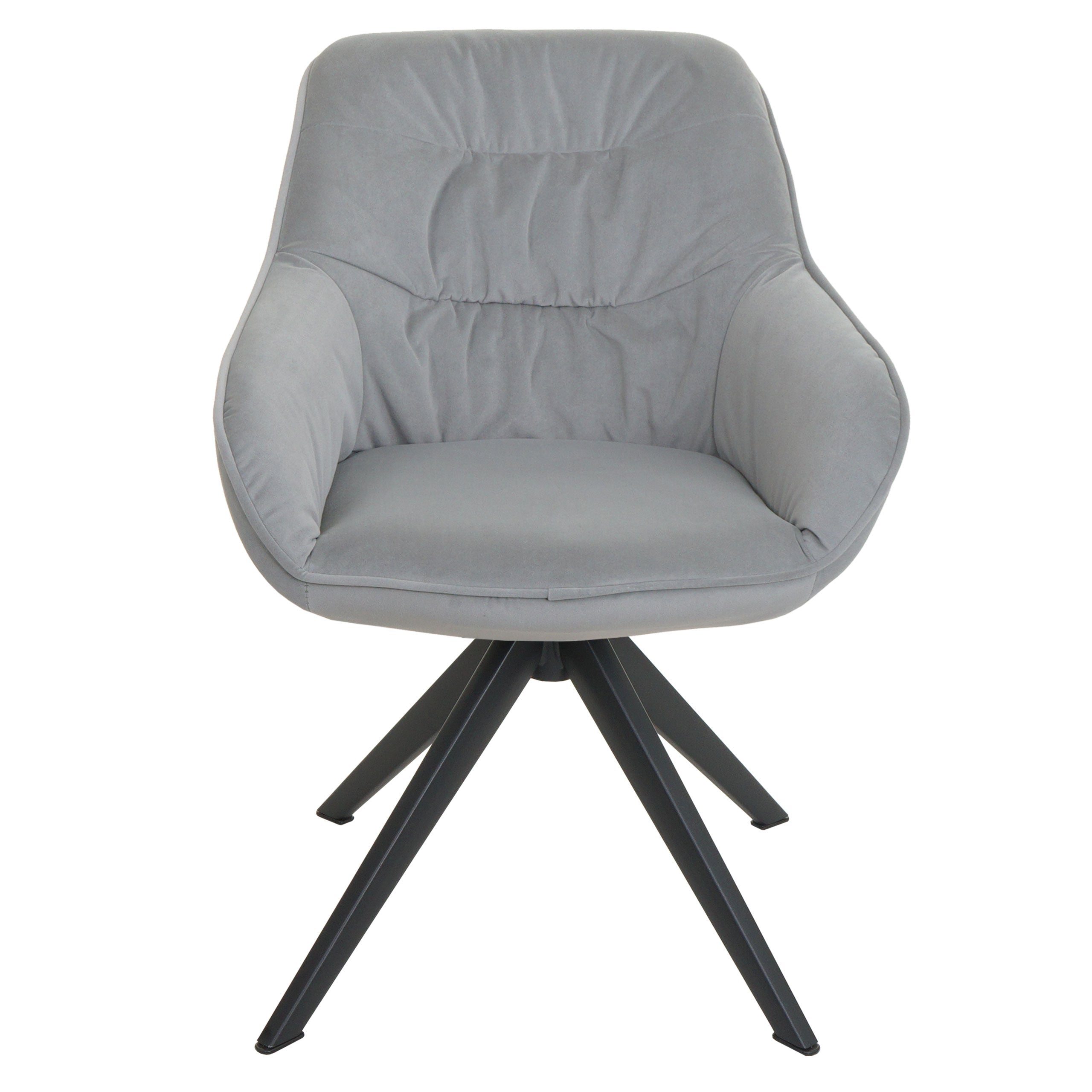 Chaise de salle à manger rembourrée avec accoudoir rotatif en métal tissu/textile gris clair 04_0006327
