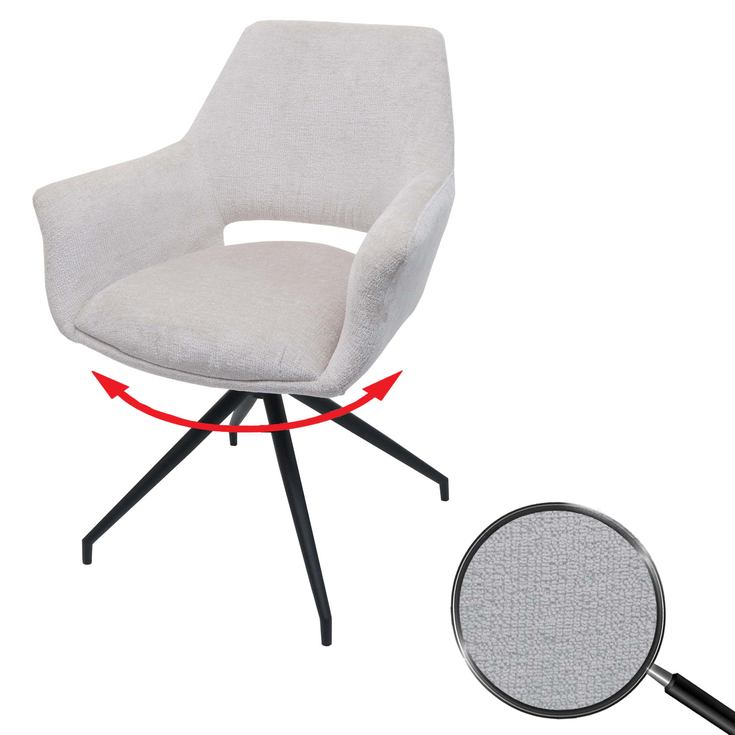Chaise de salle à manger x1 rembourrée avec accoudoirs pivotante avec fonction de retour automatique Structure en métal et tissu crème-blanc 04_0006349