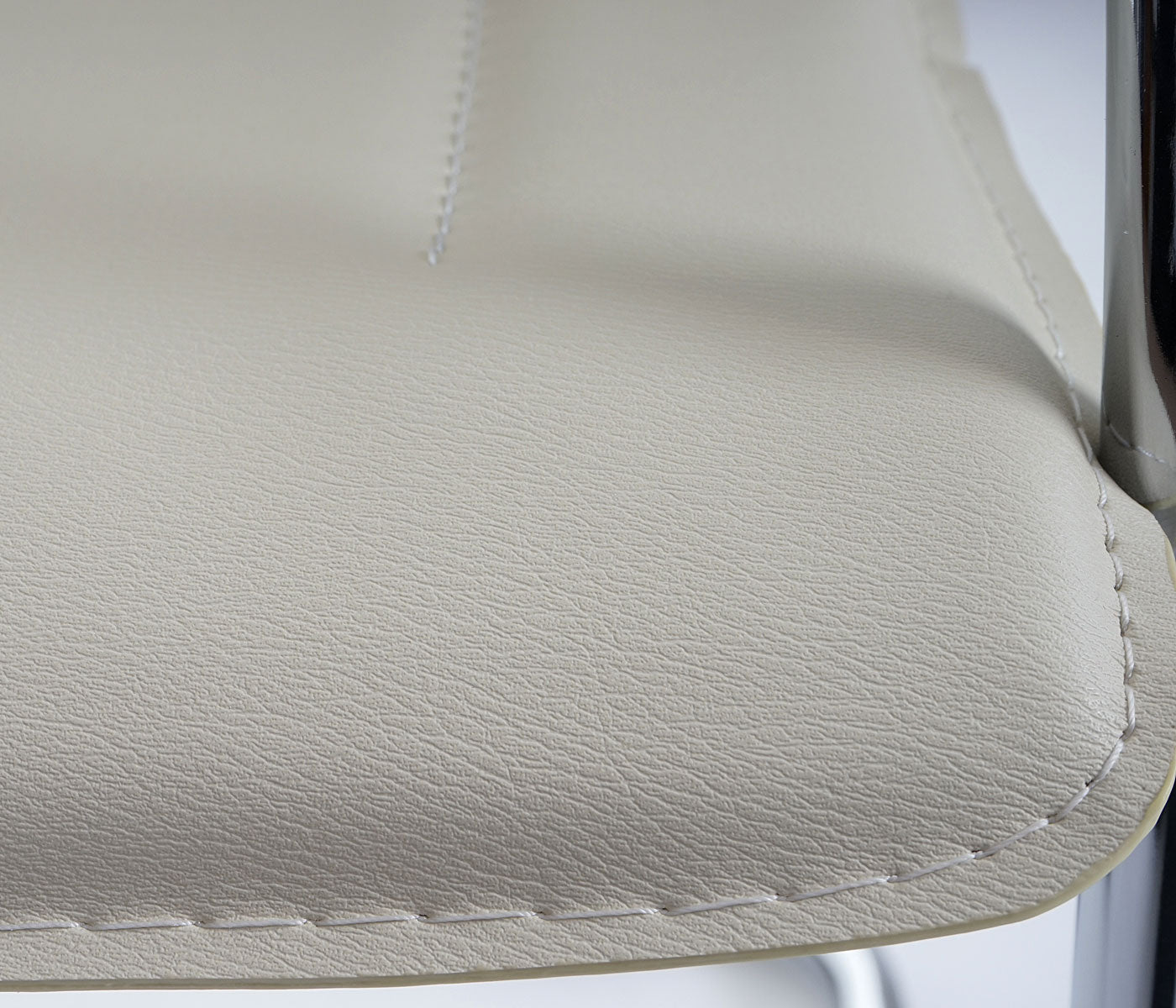 Chaise de salle à manger bureau avec coutures décoratives et accoudoirs en acier et PVC crème 04_0006356