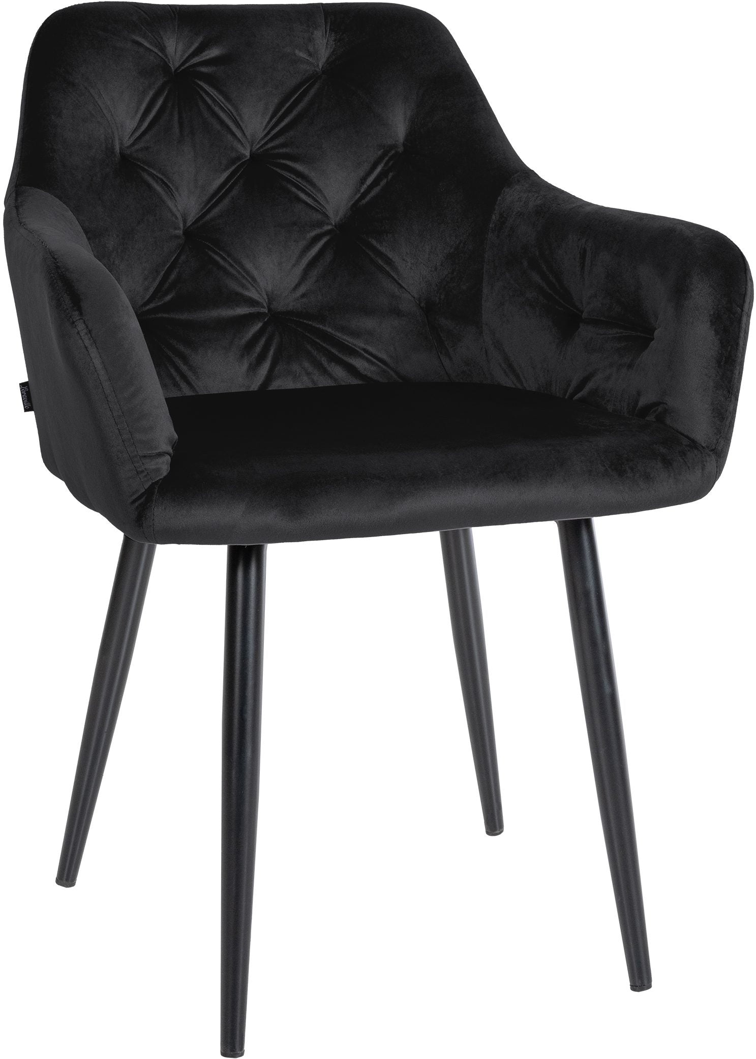 Chaise de salle à manger avec coutures décoratives en velours noir et pieds en métal noir 10_0002122