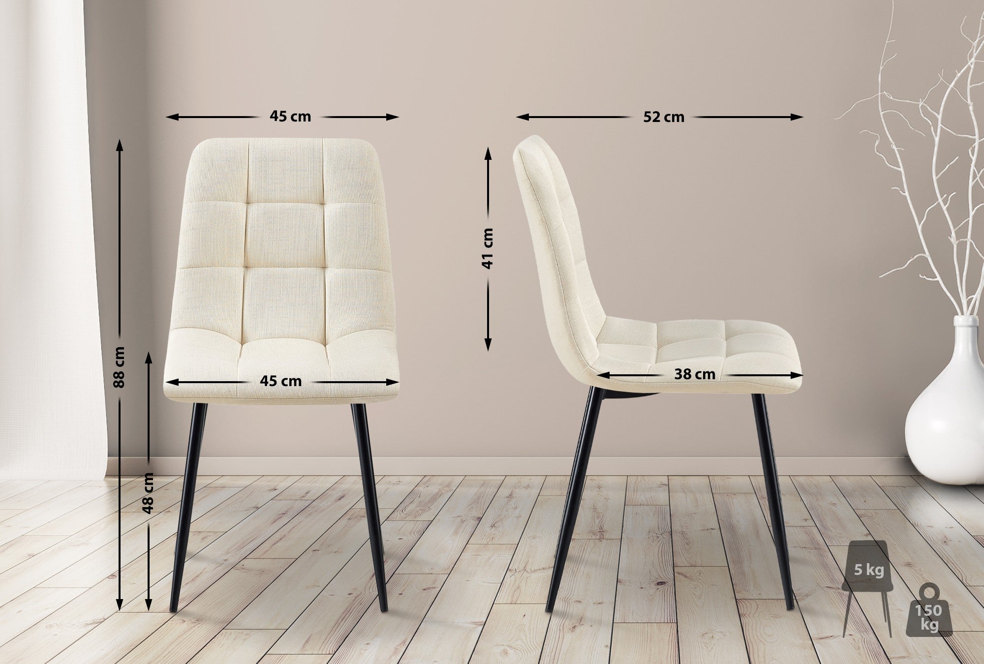 Chaise de salle à manger x1 coutures décoratives carrées en tissu crème et métal noir 10_0002142