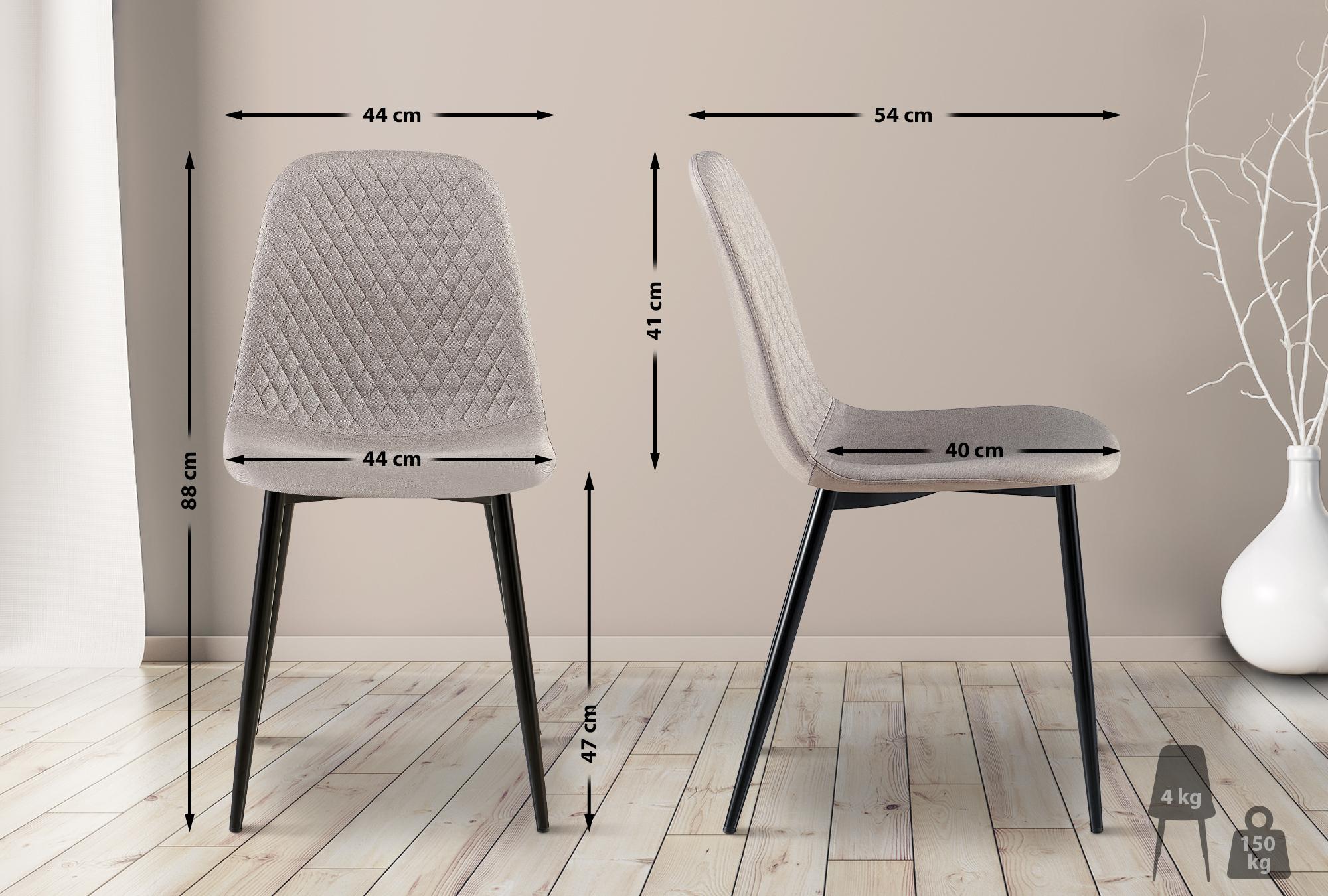 Chaise de salle à manger x1 coutures décoratives losanges assise en tissu gris pieds métal noir mat 10_0007273