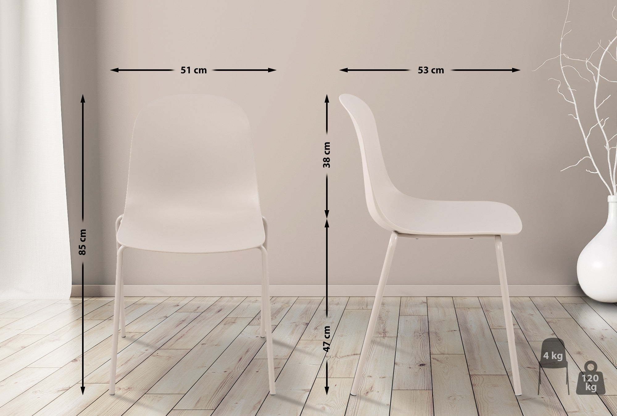 Fabriquée à partir de matériaux résistants aux intempéries, la chaise peut être utilisée aussi bien à l'intérieur qu'à l'extérieur. Cette chaise empilable est idéale pour le jardin, la terrasse et le balcon, mais elle est également idéale comme chaise de cuisine, de salle à manger, de bistrot et pour les conférences.