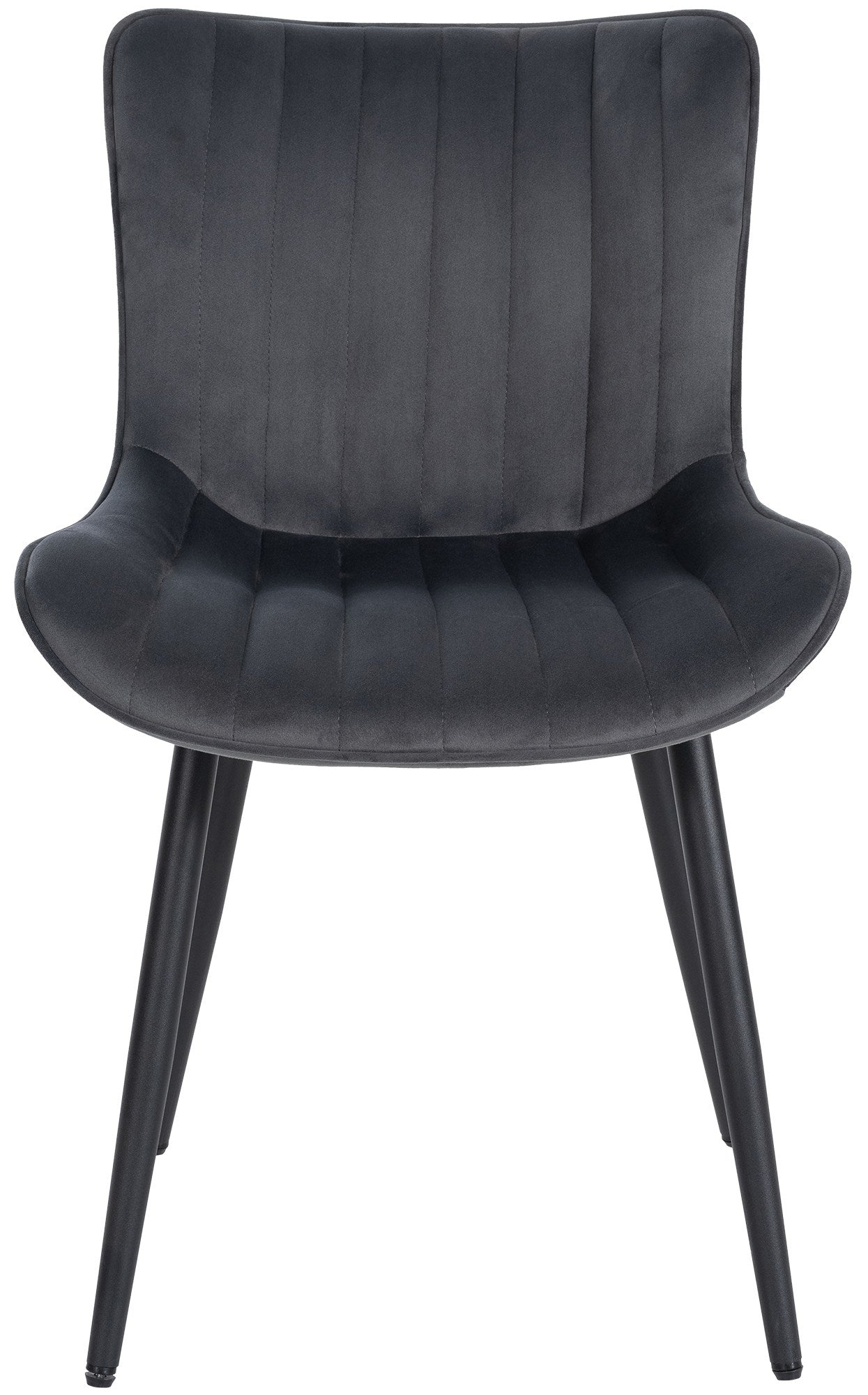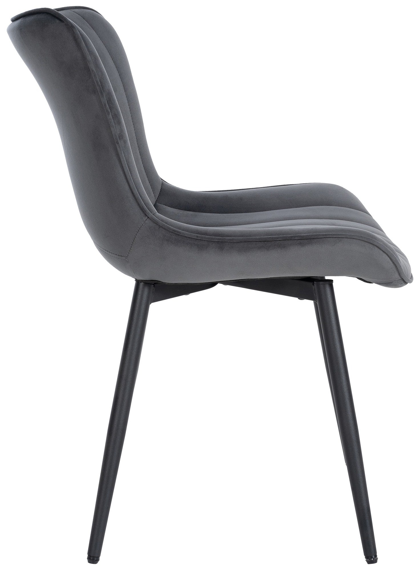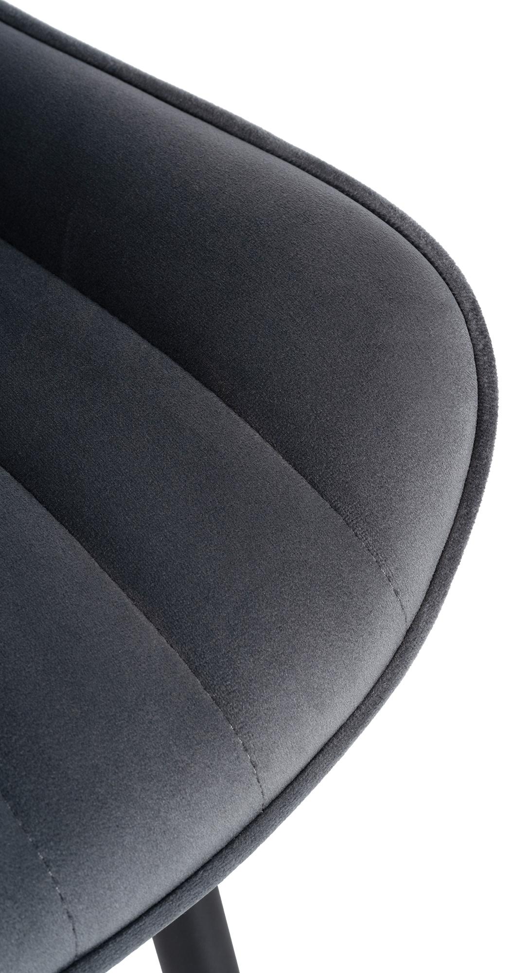 Chaise de salle à manger x1 coutures décoratives verticales avec pieds en métal noir assise en velours gris foncé