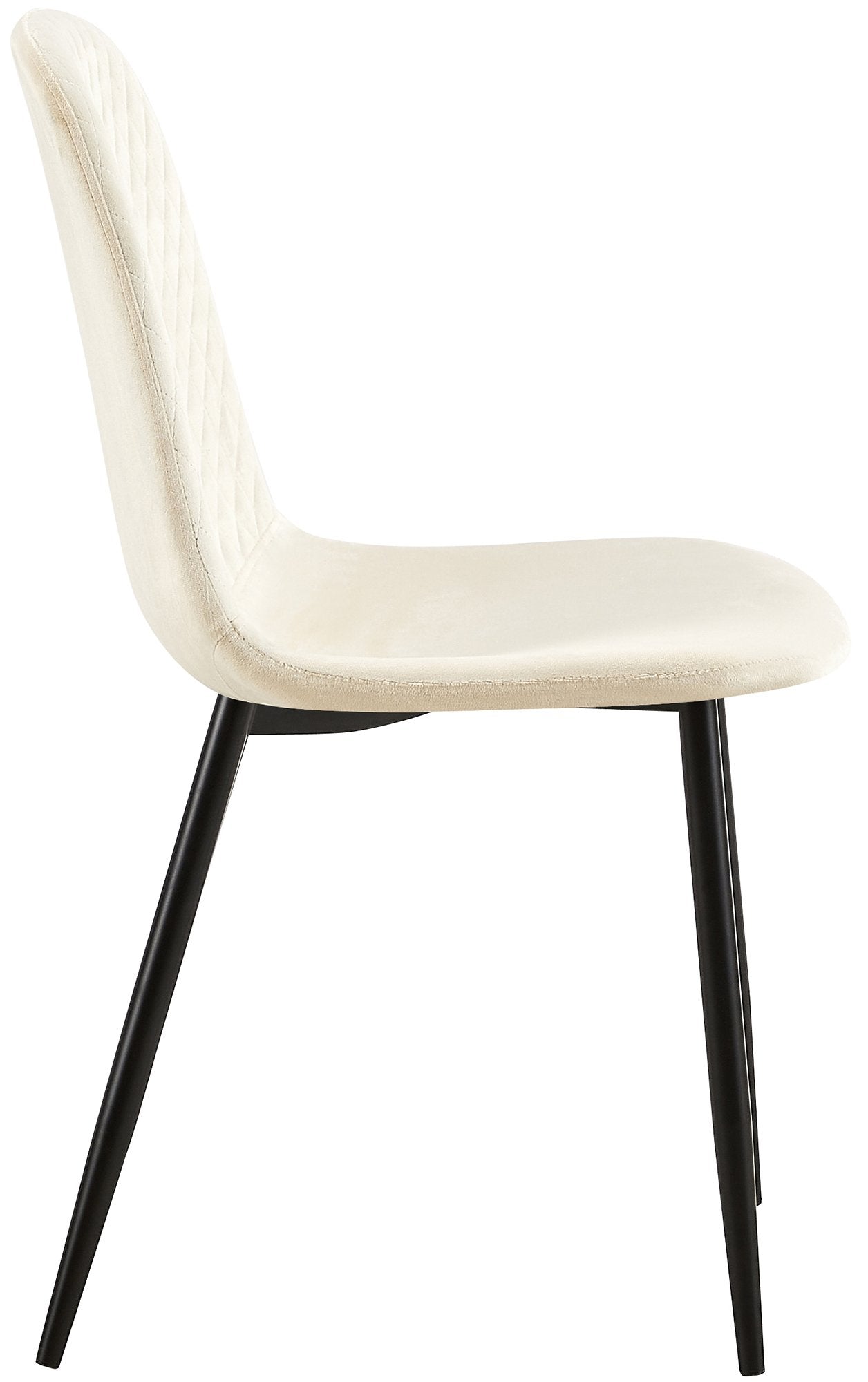 Chaise de salle à manger x1 couture en losange en velours crème et métal noir 10_0002250