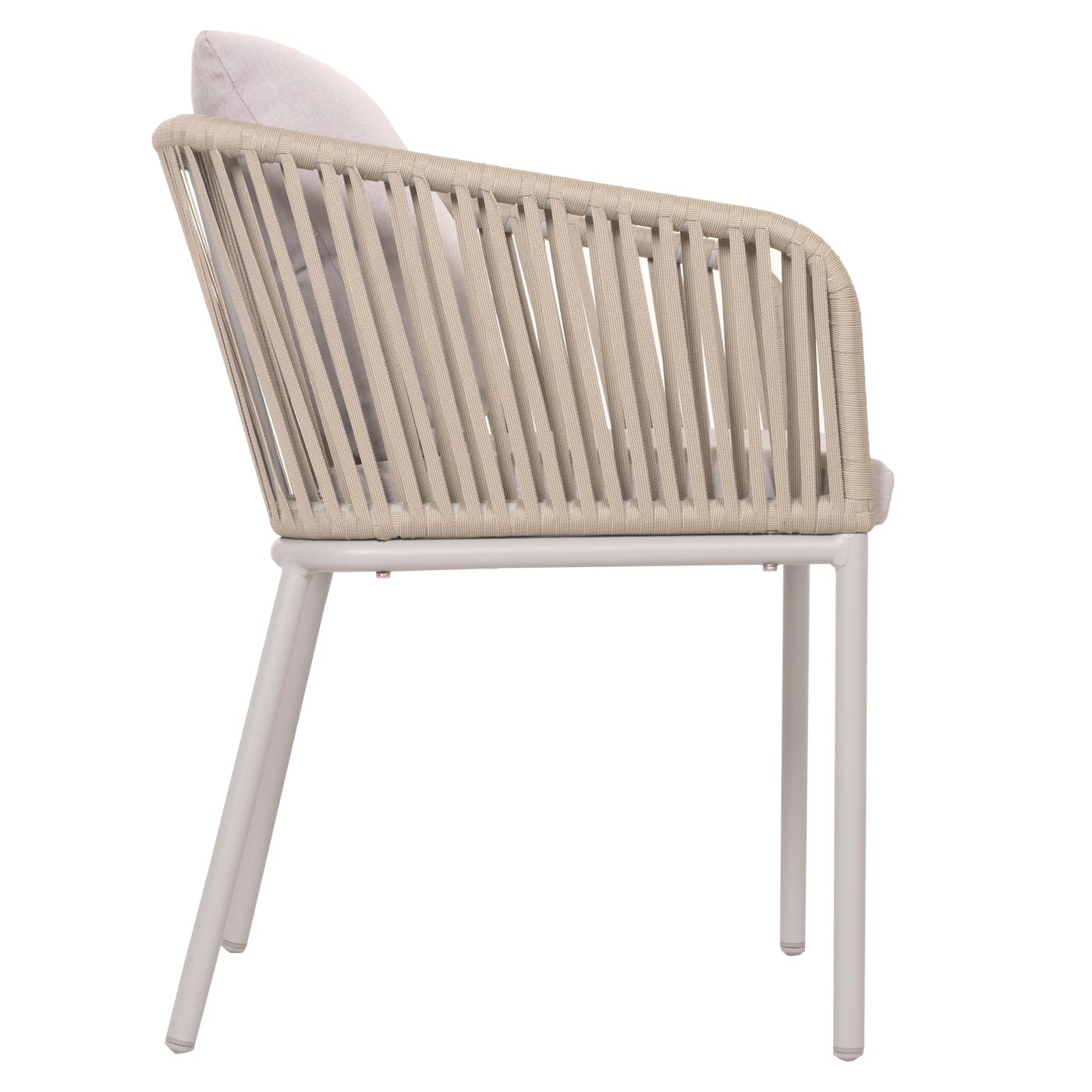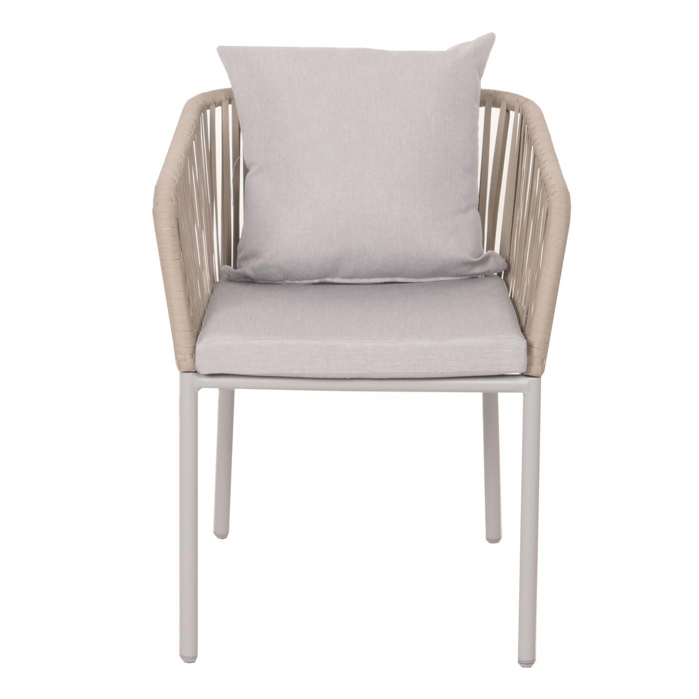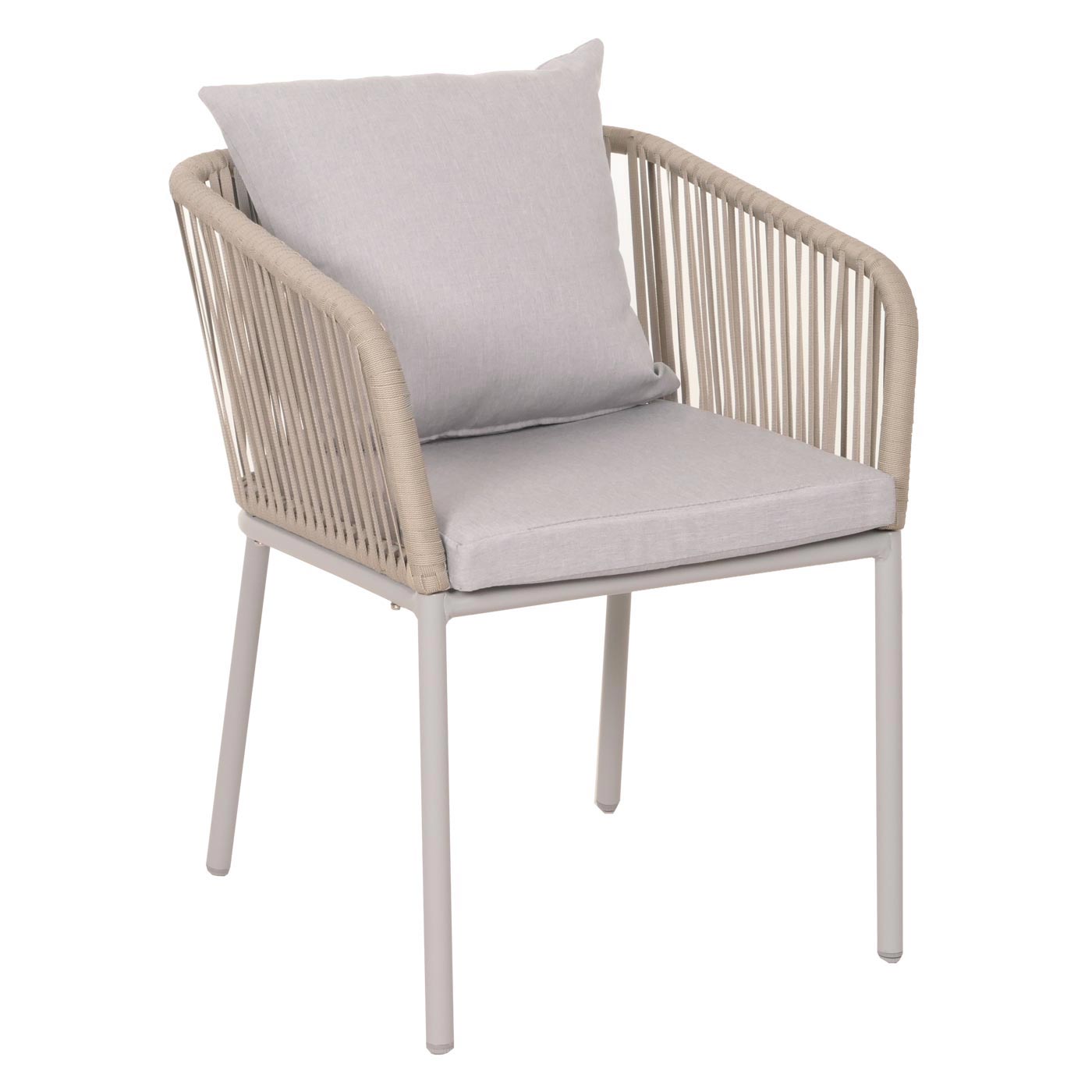 Lot de 2 chaises de jardin avec accoudoir cadre en aluminium corde en maille coussin gris clair 04_0007308