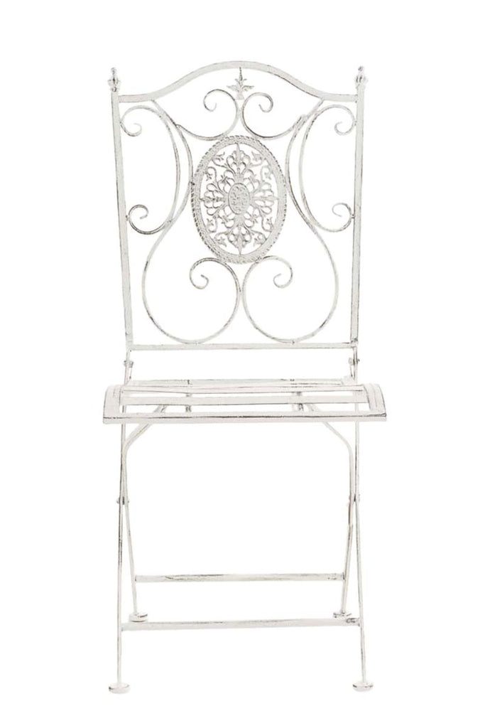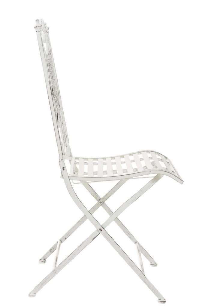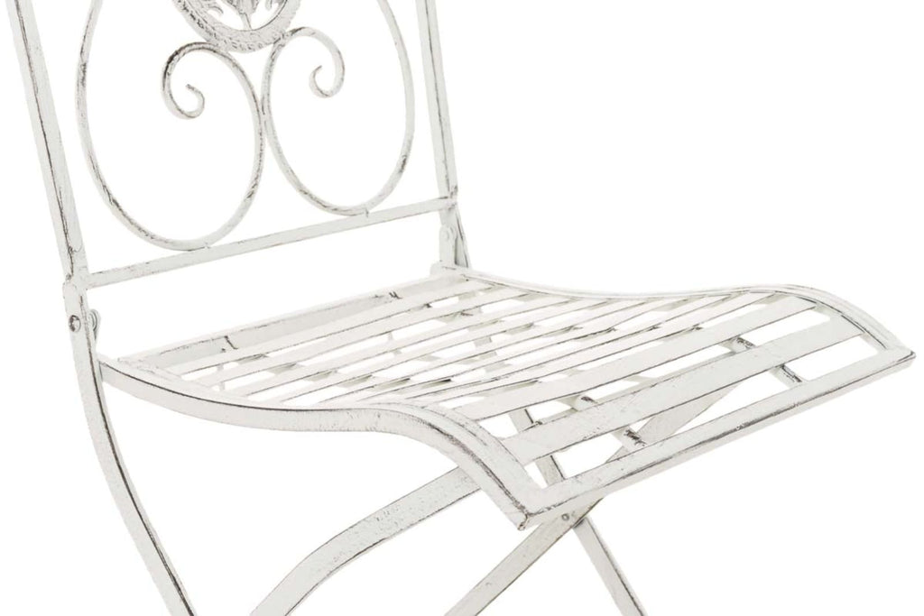 Lot de 2 chaises de jardin balcon terrasse design rustique pliable en métal blanc vieilli 10_0002873