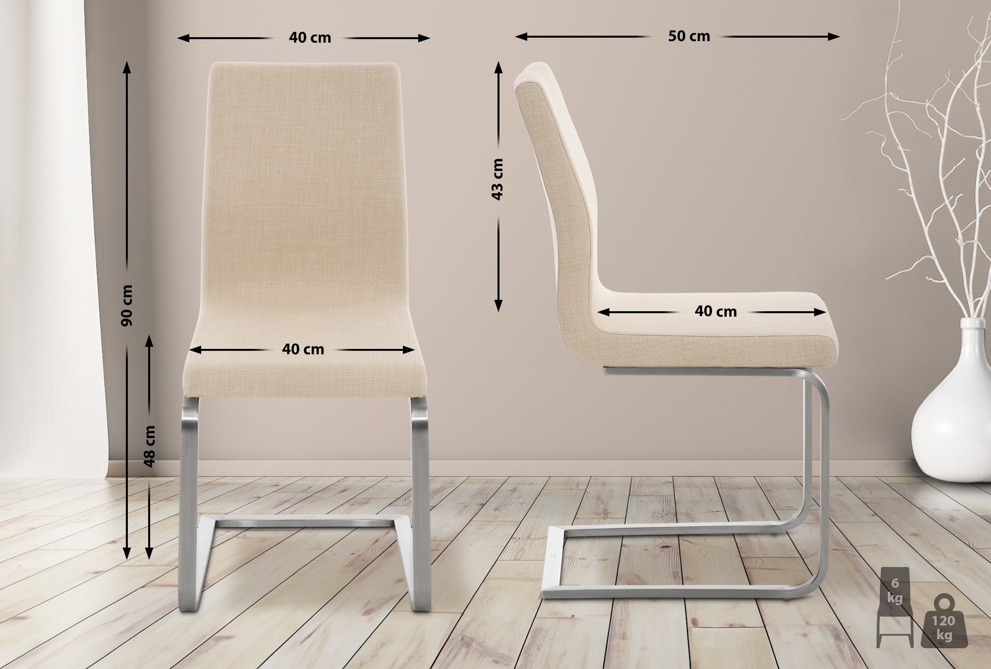 Chaise de salle à manger x1 design moderne en tissu crème support en acier inoxydable 10_0007616