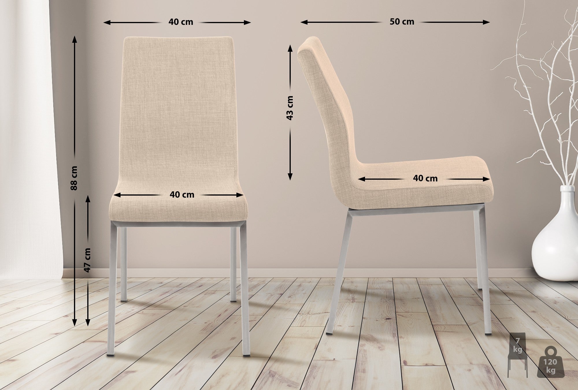 Chaise de salle à manger x1 style épuré en tissu crème et acier inoxydable 10_0007617