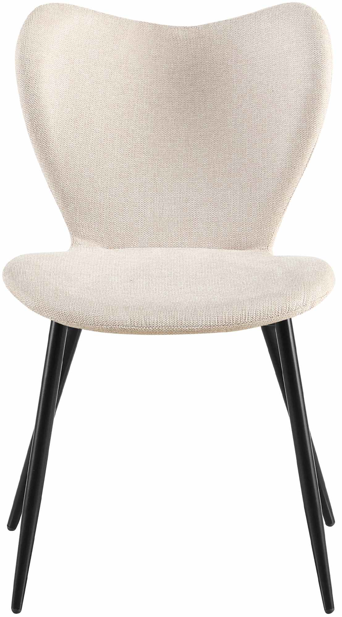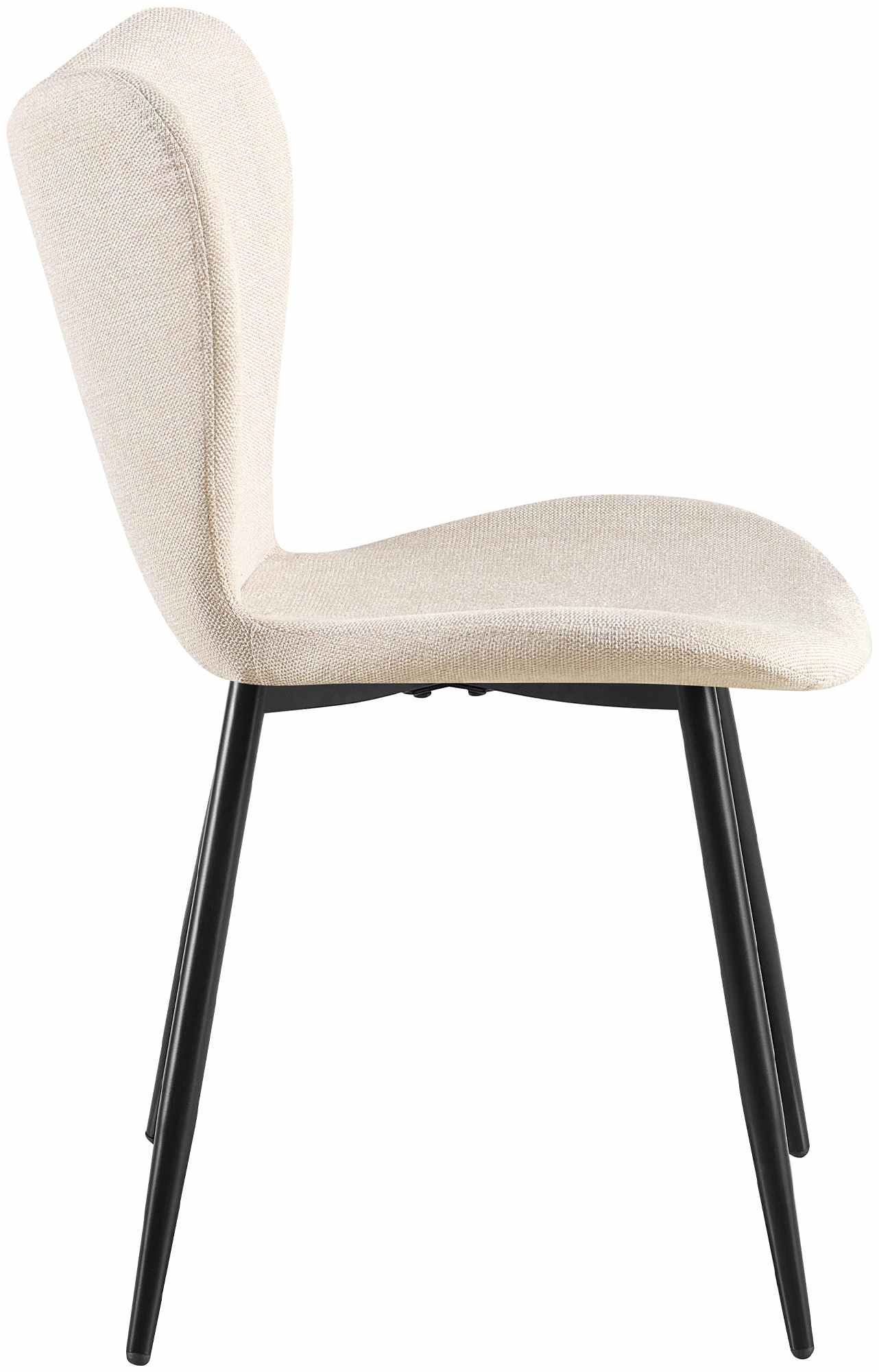 Chaise de salle à manger x1 dossier forme arrondie en papillon en tissu cème cadre à quatre pieds en métal noir 10_0007415