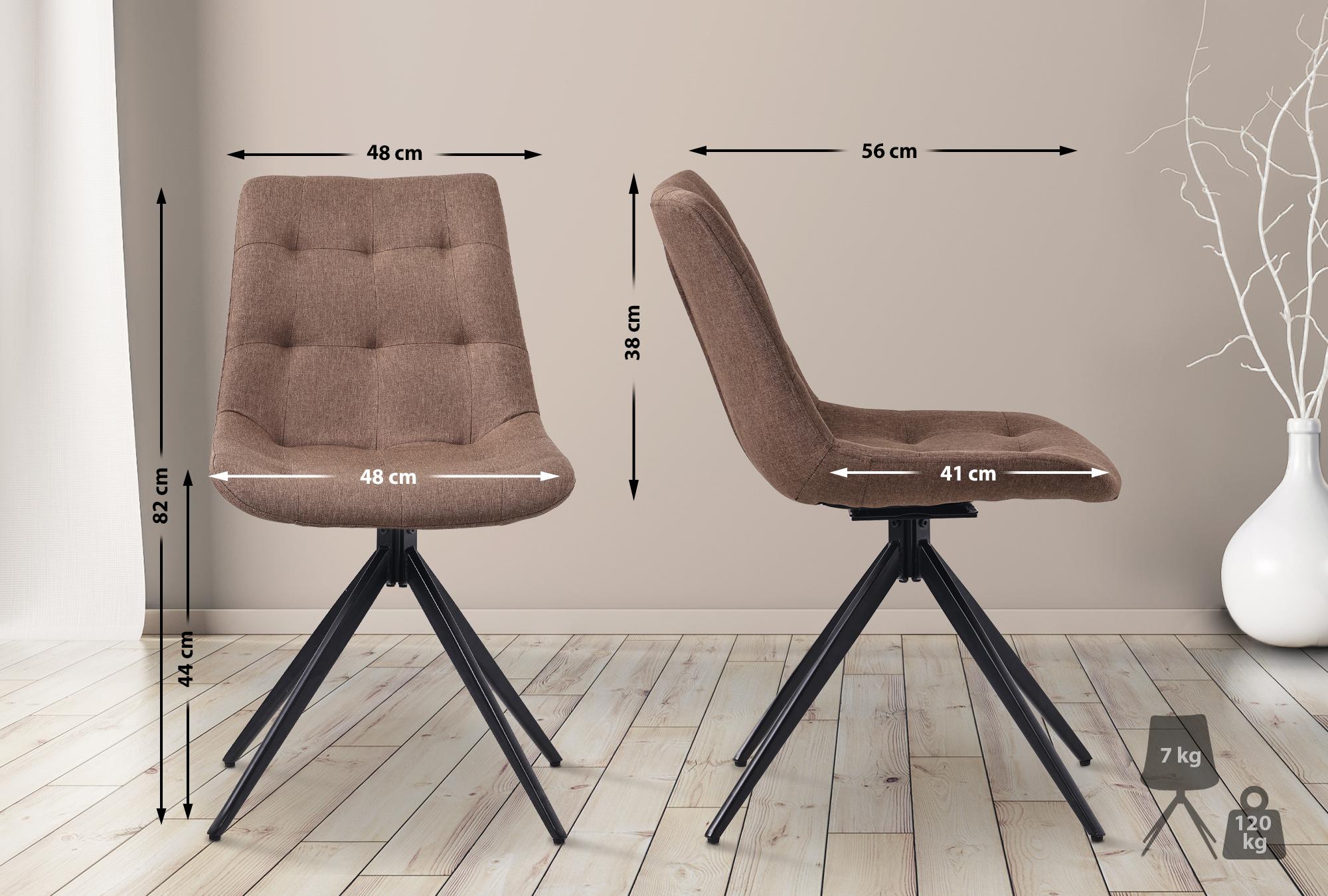 Chaise contemporaine pivotante avec pieds croisés en métal noir et assise en tissu marron 10_0007491