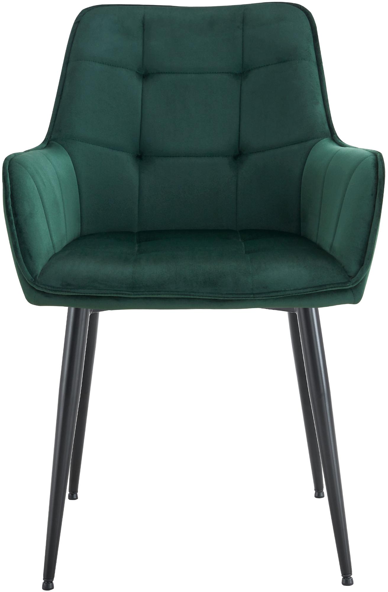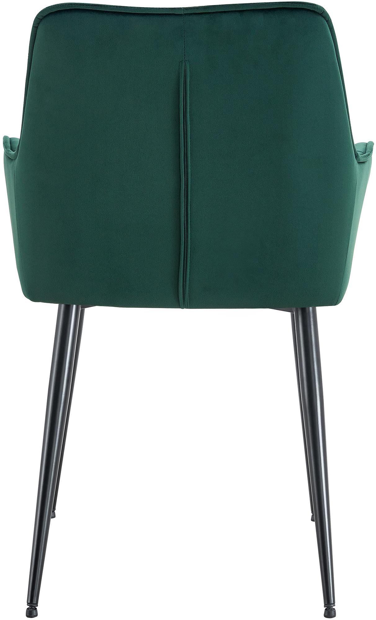 Chaise de salle à manger x1 avec accoudoirs en velours vert foncé capitonné cadre métal noir 10_0007195