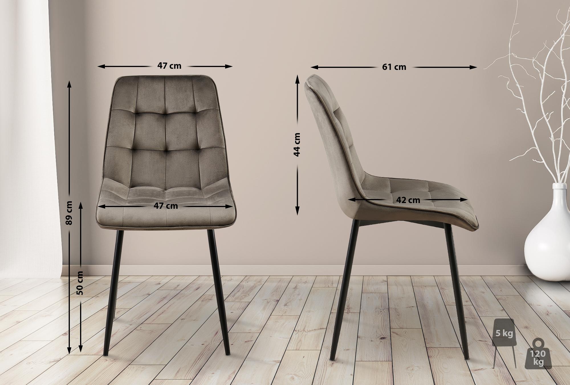 Le rembourrage confortable de l'assise et du dossier est essentiel pour une assise confortable. La coque et le dossier sont recouverts de velours facile d'entretien. Les élégantes coutures décoratives créent un effet accrocheur.