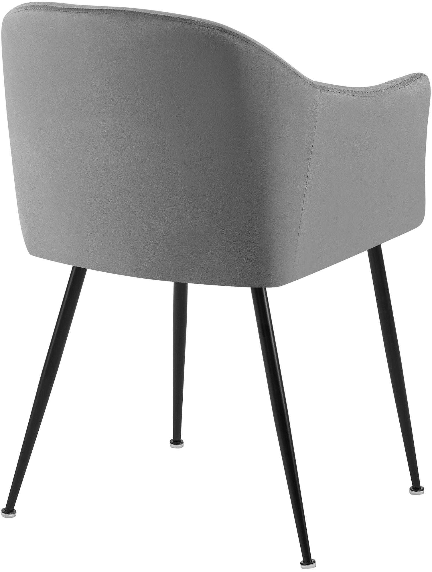 Chaise de salle à manger en velours gris foncé avec dossier arrondi et pieds métal noir moderne et intemporel 10_0007363