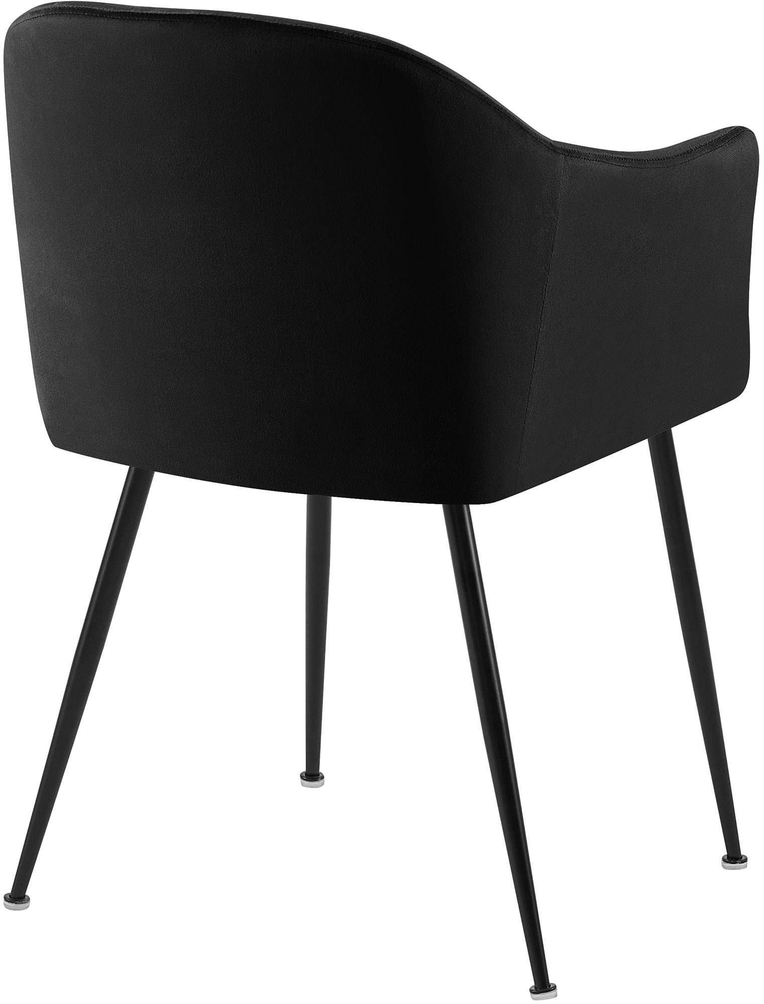 Chaise de salle à manger en velours noir avec dossier arrondi et pieds métal noir moderne et intemporel 10_0007372