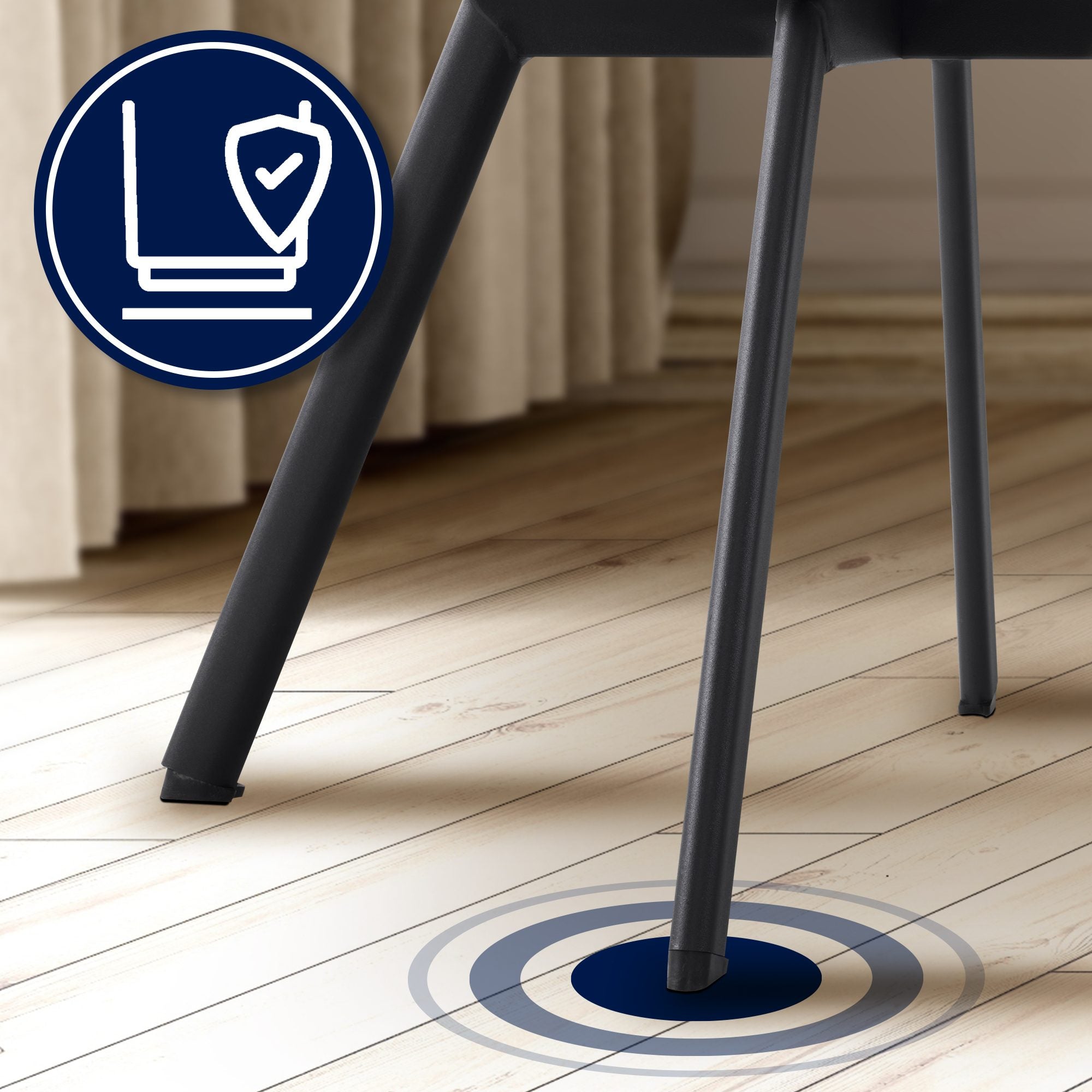 Grâce à ses matériaux faciles d'entretien, la chaise est particulièrement adaptée à un usage quotidien. Les salissures légères s'enlèvent facilement avec un chiffon humide. Les patins sous les pieds métalliques protègent votre sol des rayures.