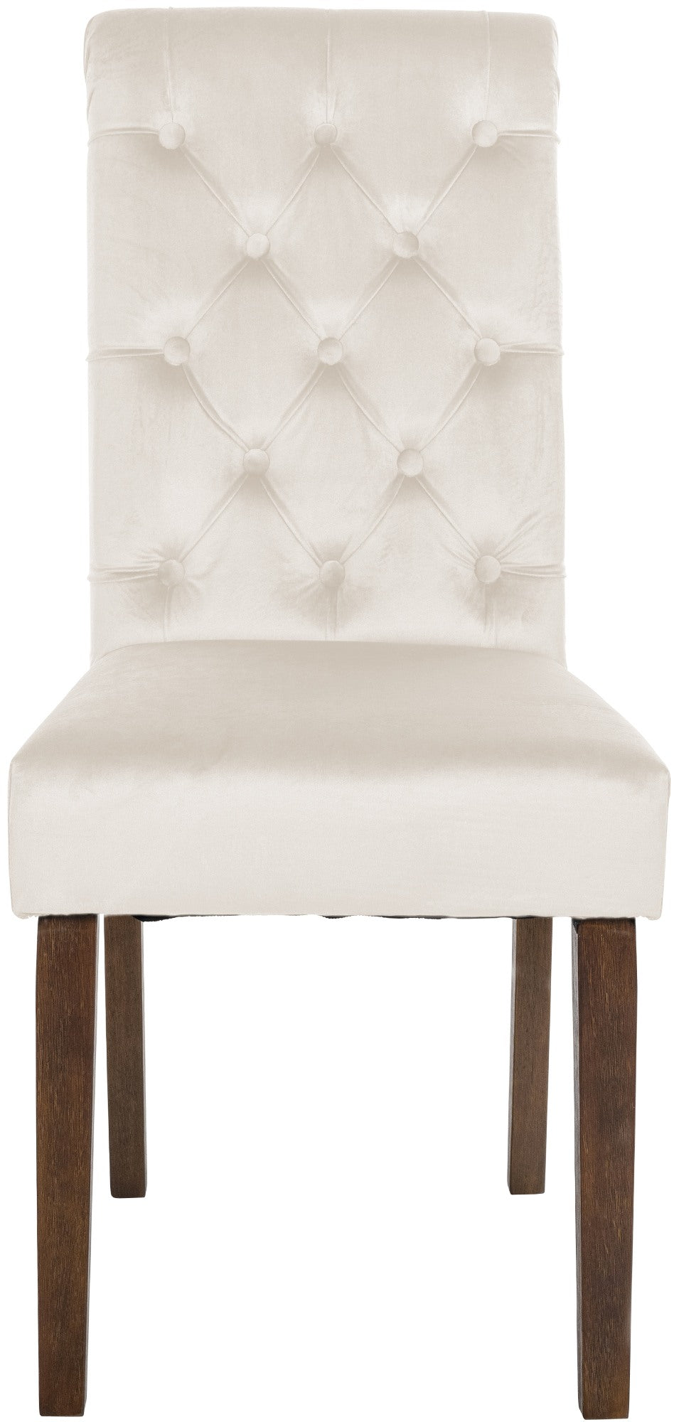 Chaise de salle à manger x1 élégance capitonnée et confort en velours crème cadre en bois marron foncé 10_0007383