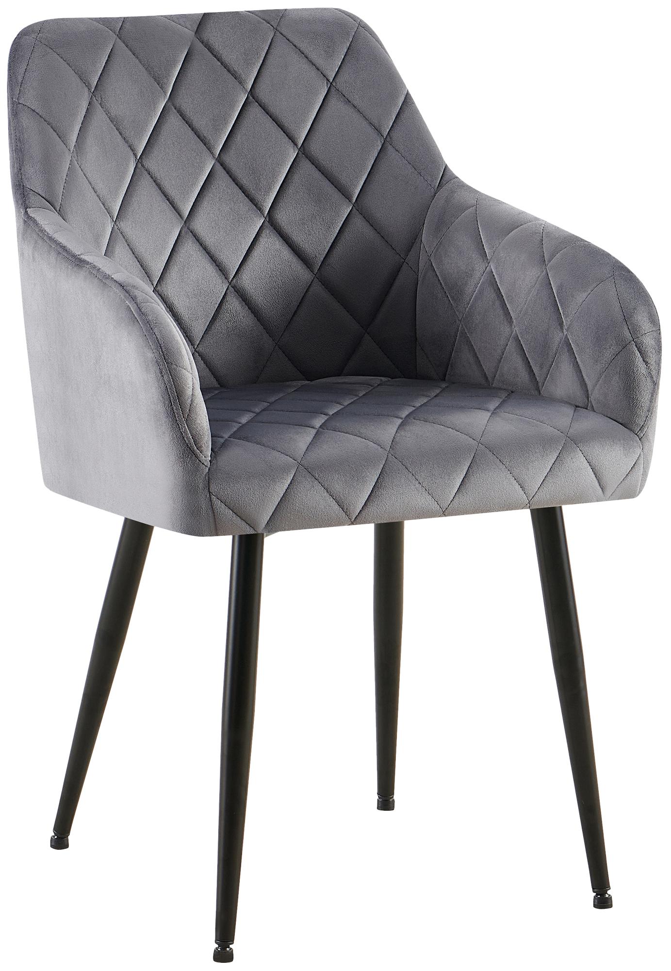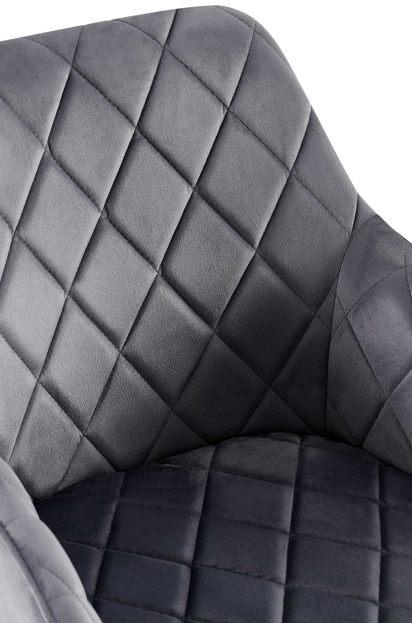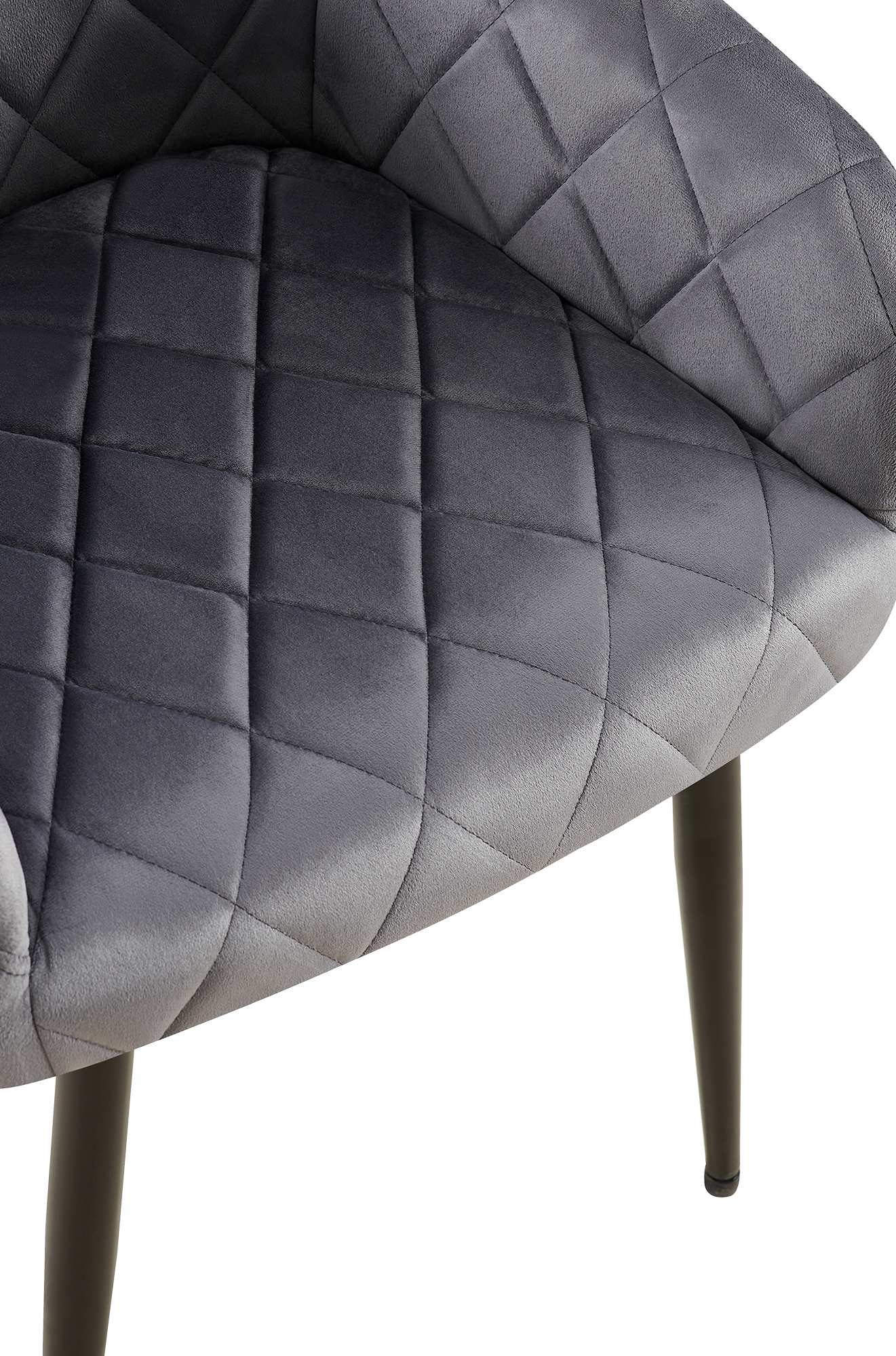 Chaise de salle à manger x1 en velours gris foncé couture en losange pieds en métal noir 10_0007220