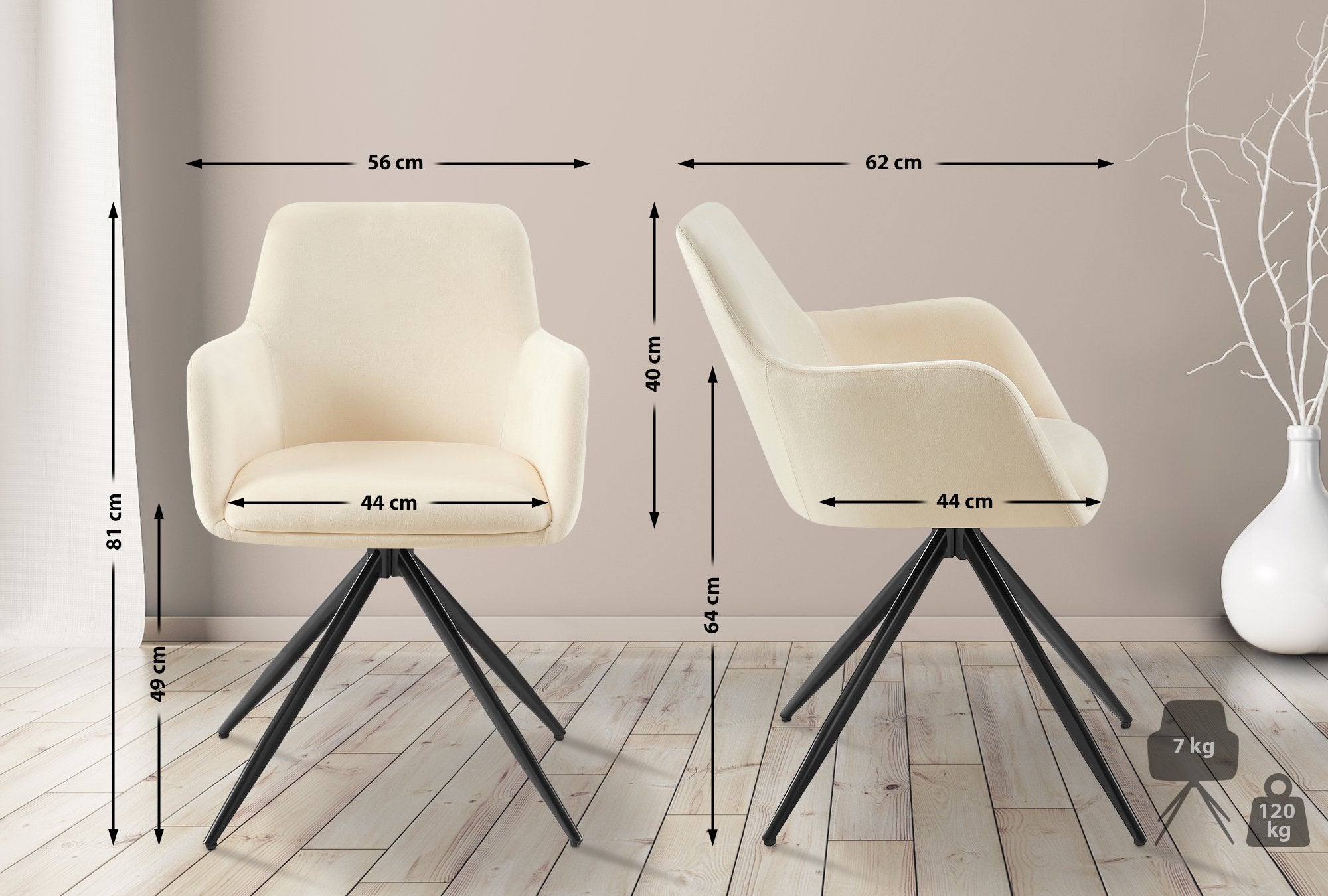 Le rembourrage confortable de l'assise, du dossier et des accoudoirs est essentiel pour une assise confortable. La coque d'assise est recouverte d'un élégant velours. La fonction pivotante permet une rotation à 180 degrés de l'assise, offrant une liberté de mouvement supplémentaire.