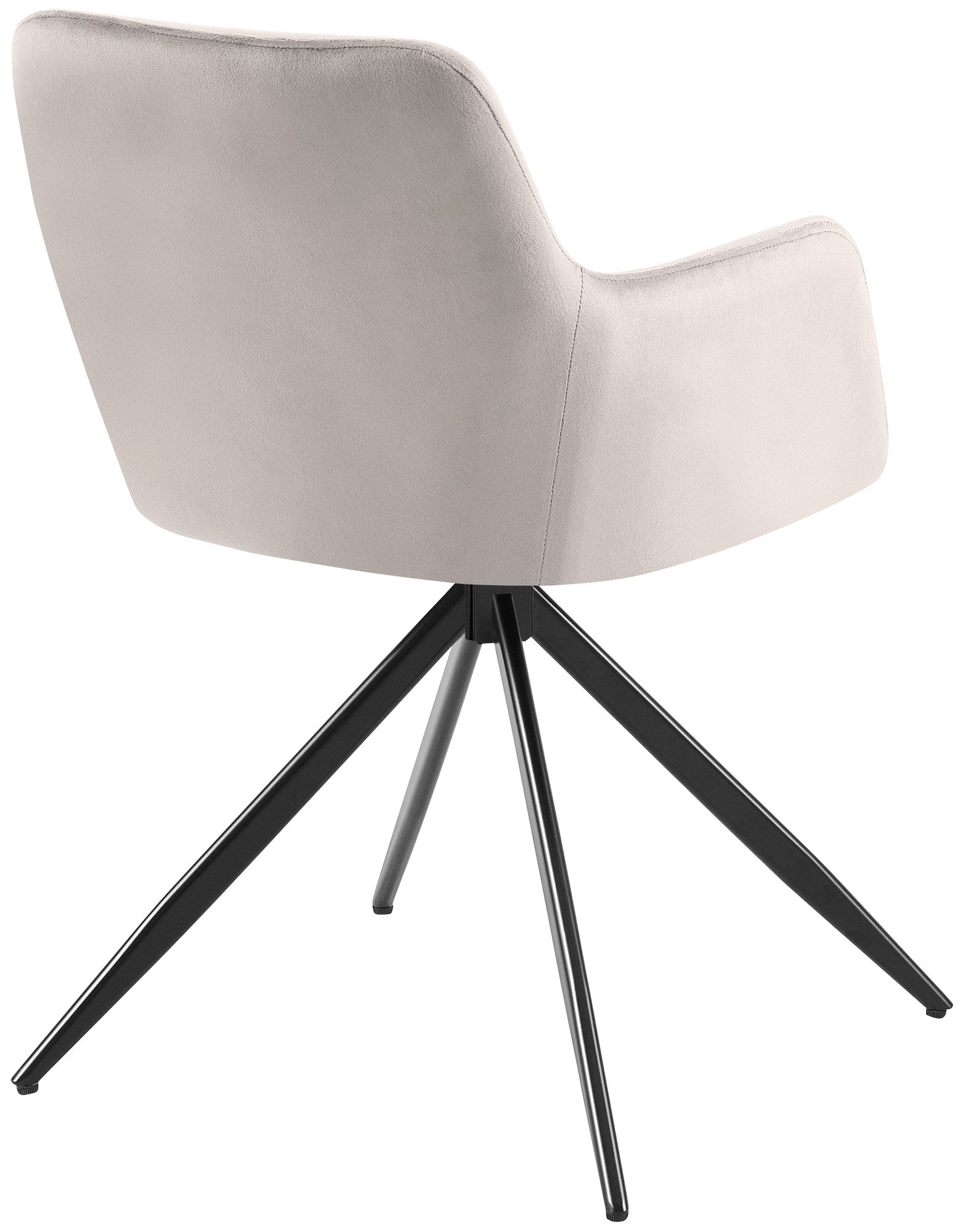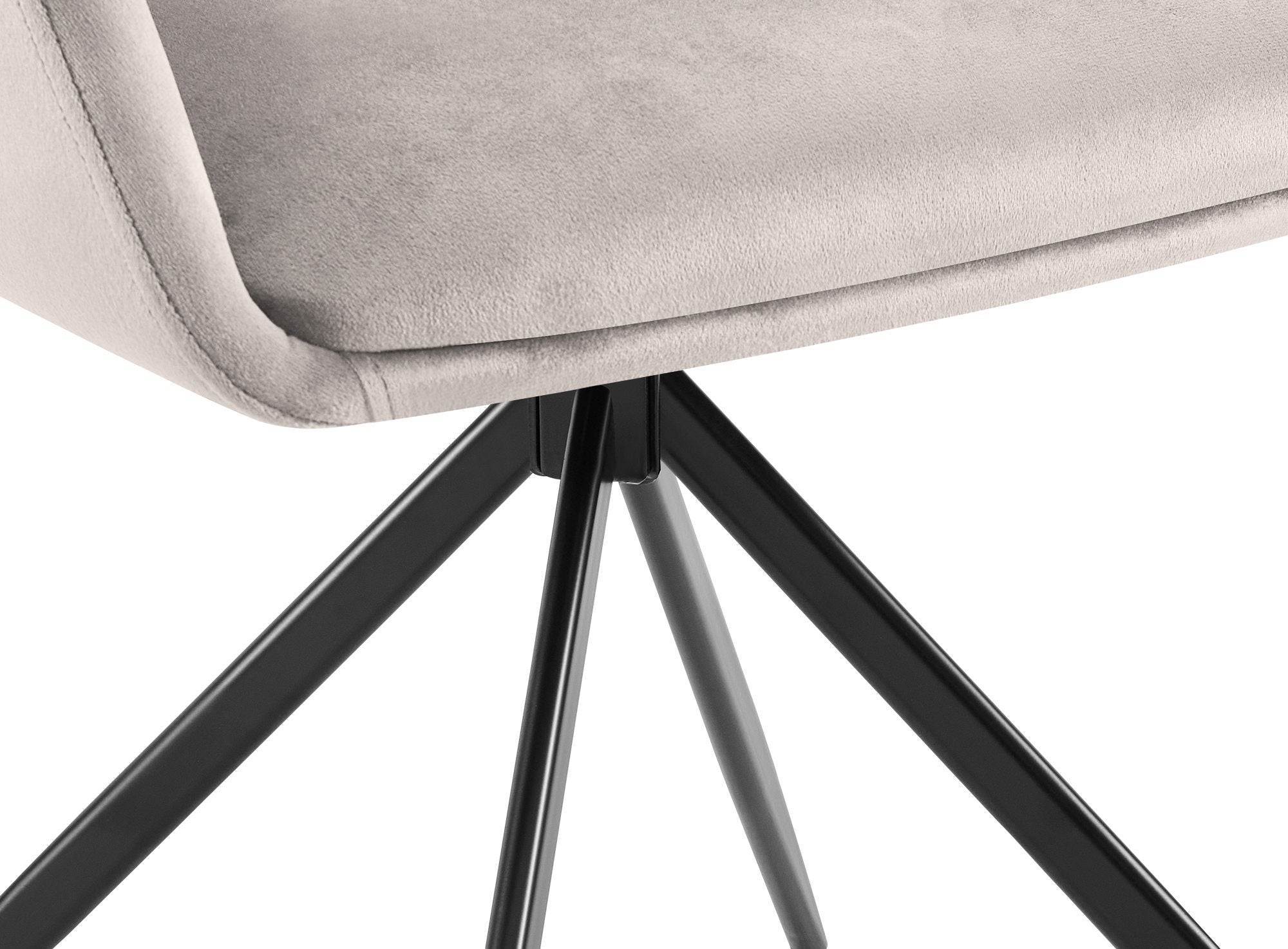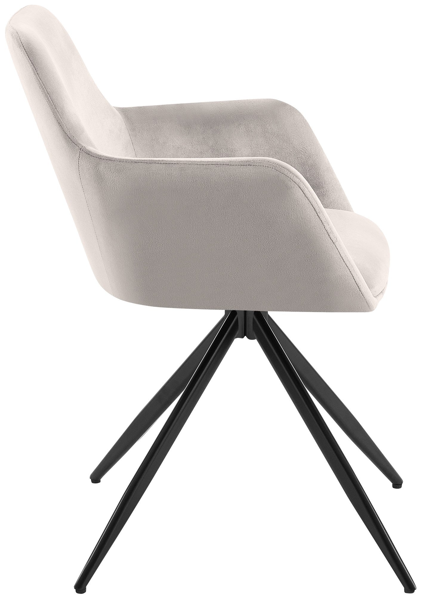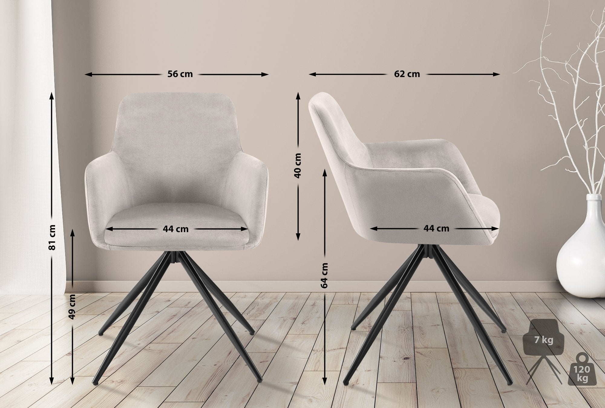 Le rembourrage confortable de l'assise, du dossier et des accoudoirs est essentiel pour une assise confortable. La coque d'assise est recouverte d'un élégant velours. La fonction pivotante permet une rotation à 180 degrés de l'assise, offrant une liberté de mouvement supplémentaire.