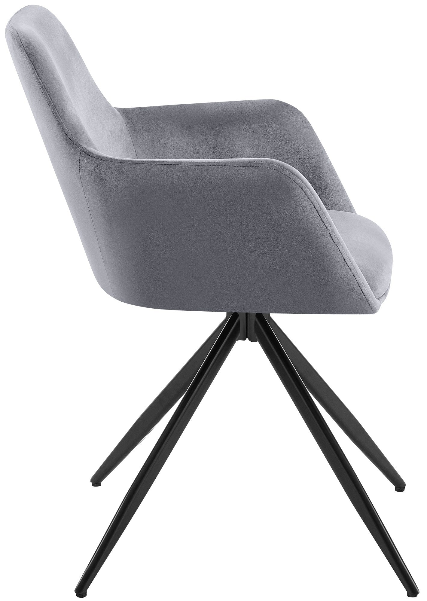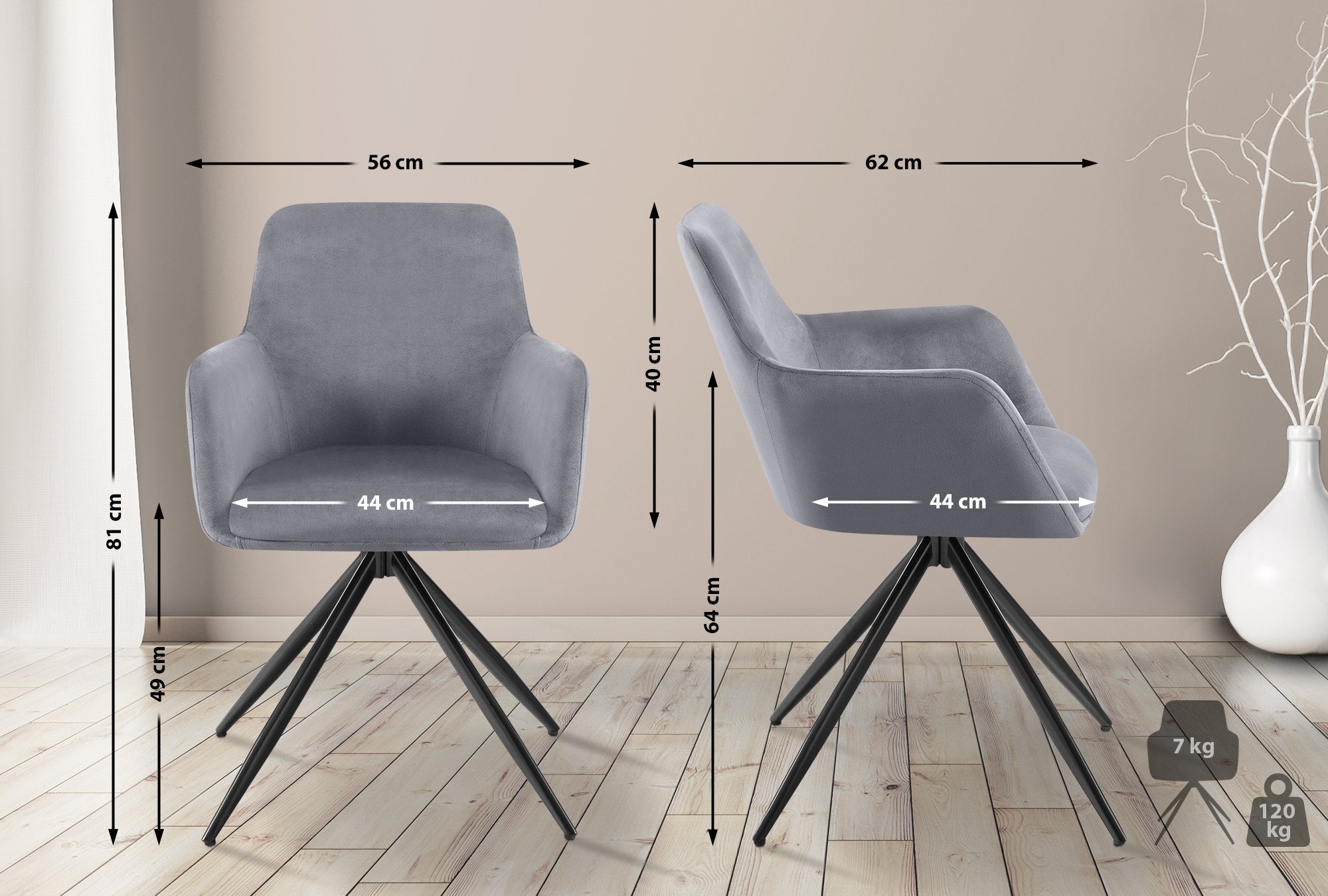 Le rembourrage confortable de l'assise, du dossier et des accoudoirs est essentiel pour une assise confortable. La coque d'assise est recouverte d'un élégant velours. La fonction pivotante permet une rotation à 180 degrés de l'assise, offrant une liberté de mouvement supplémentaire.