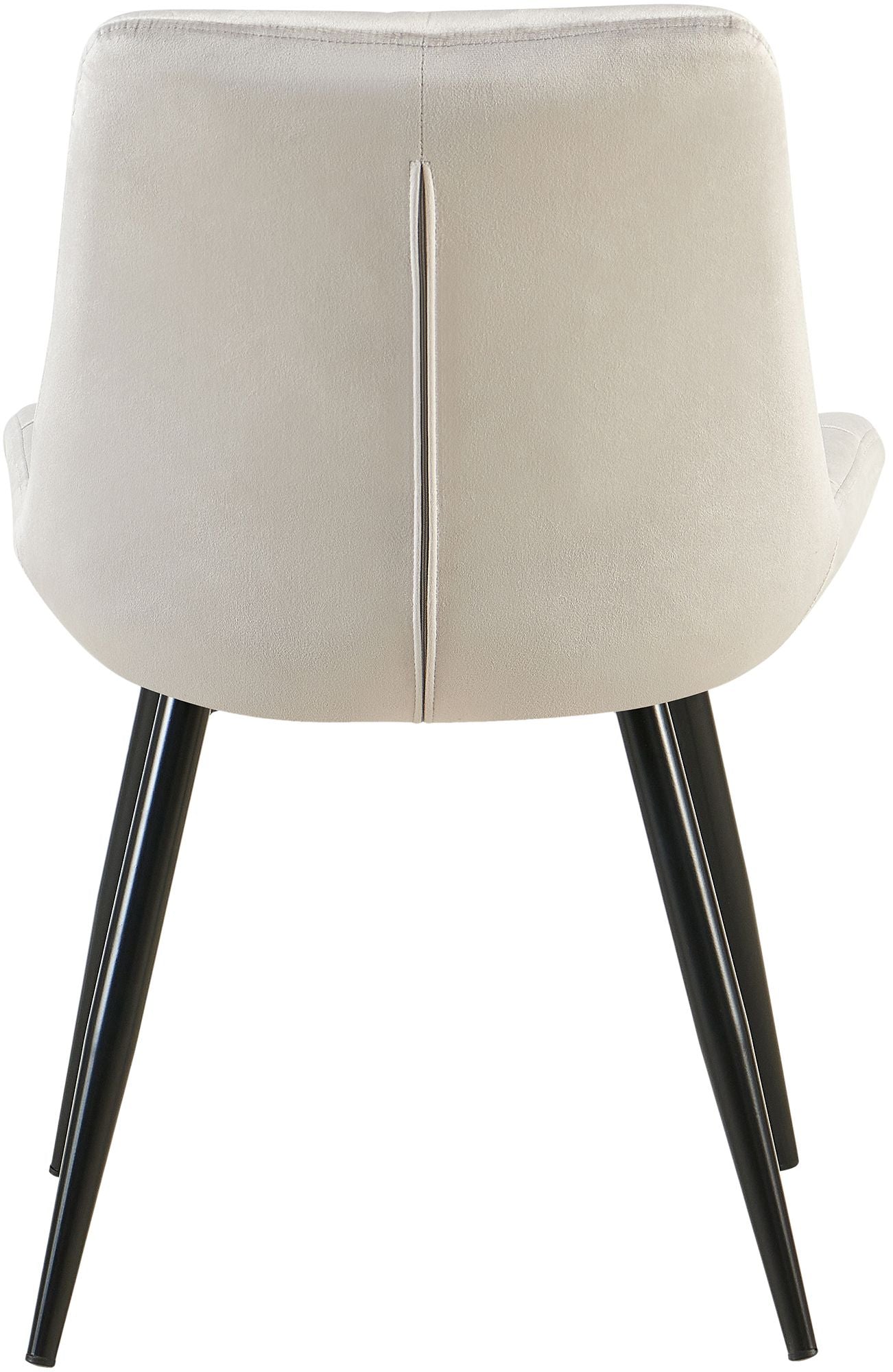 La base de cette chaise de salle à manger est un cadre stable à quatre pieds en métal noir thermolaqué. Les protections de sol empêchent d'endommager les sols sensibles.