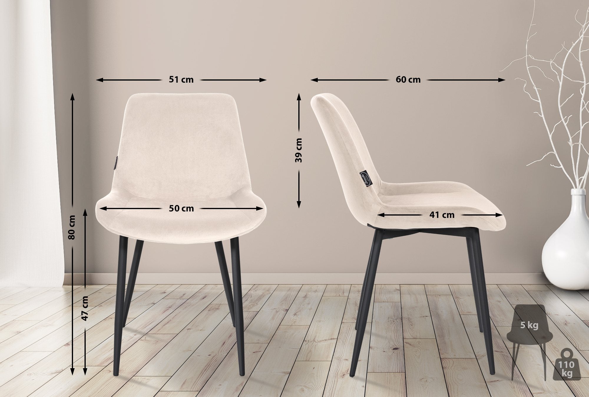 Chaise de salle à manger x1 design moderne et confortable en velours crème et métal noir mat 10_0007233