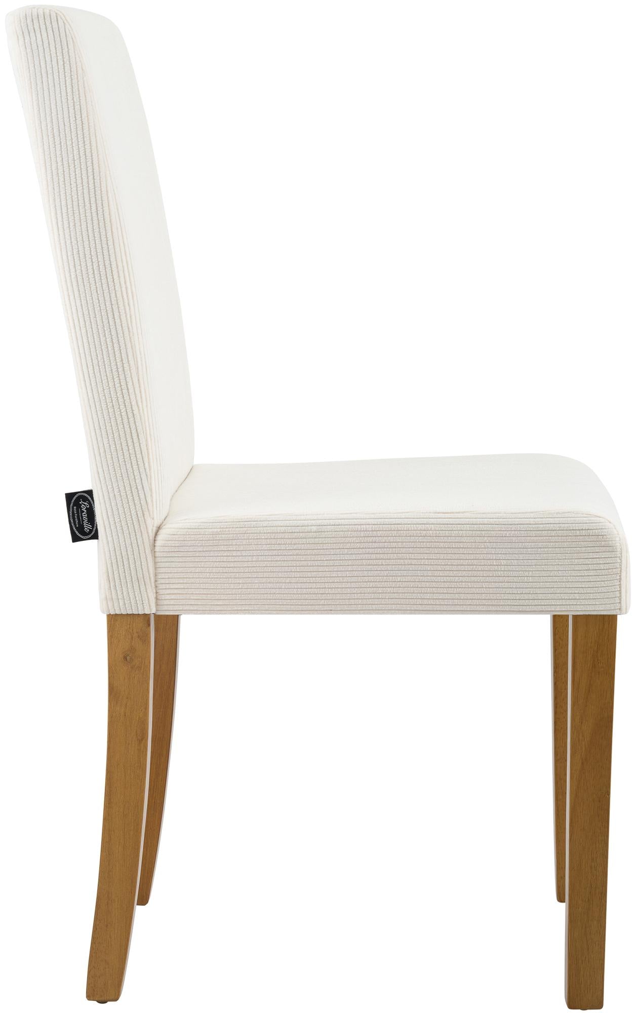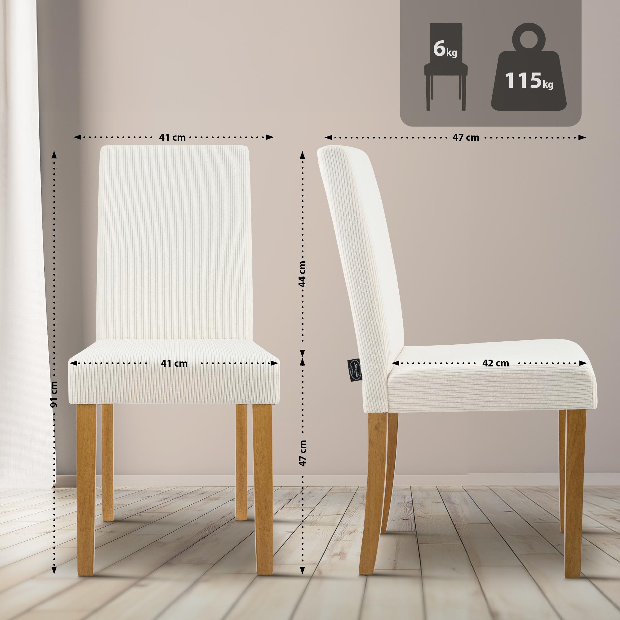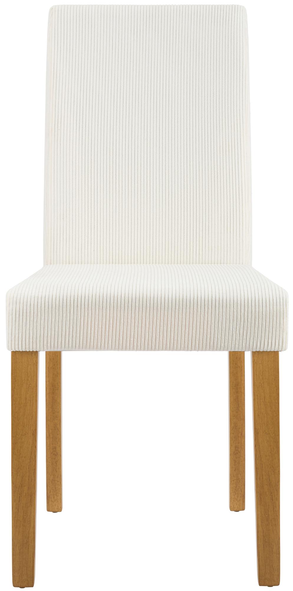 Chaise de salle à manger contemporaine x1 dossier haut en velours côtelé crème et pieds en bois clair 10_0007241