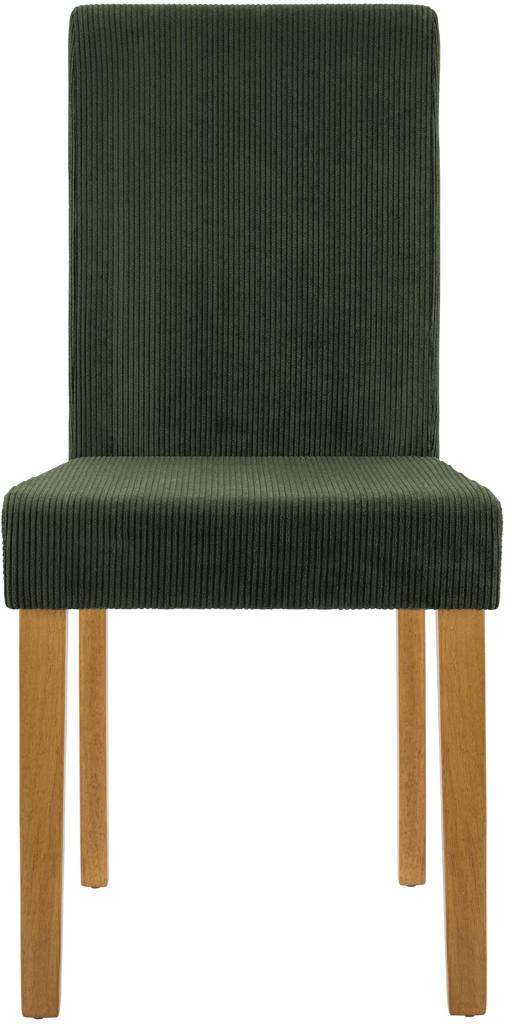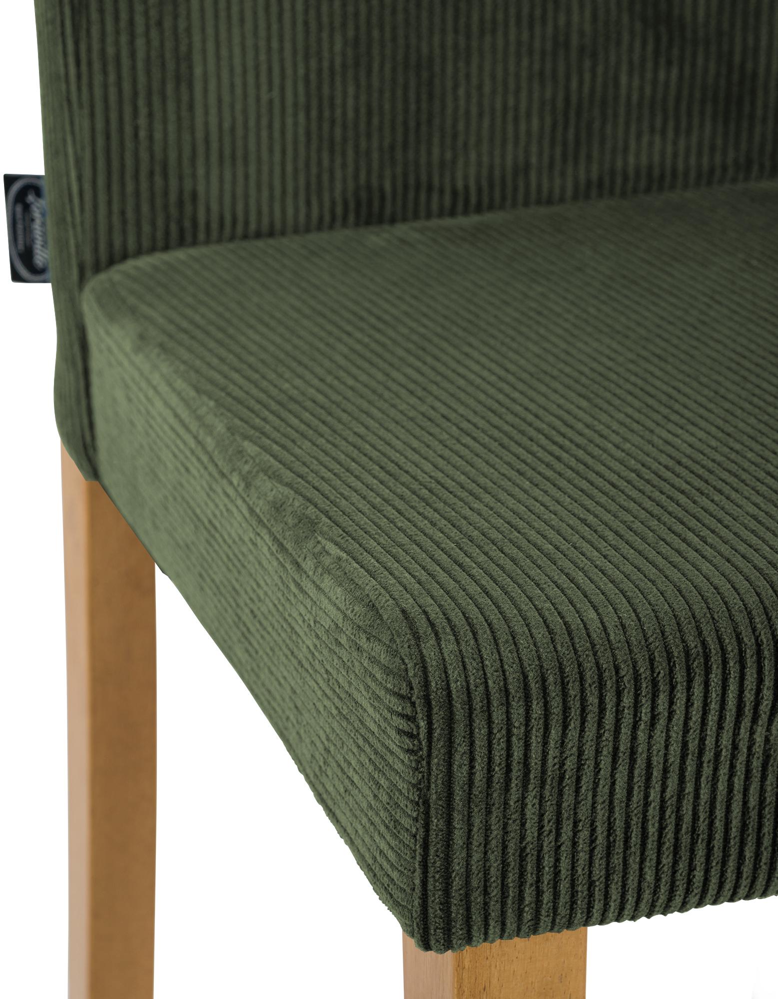 Chaise de salle à manger contemporaine x1 dossier haut en velours côtelé vert et pieds en bois clair 10_0007243